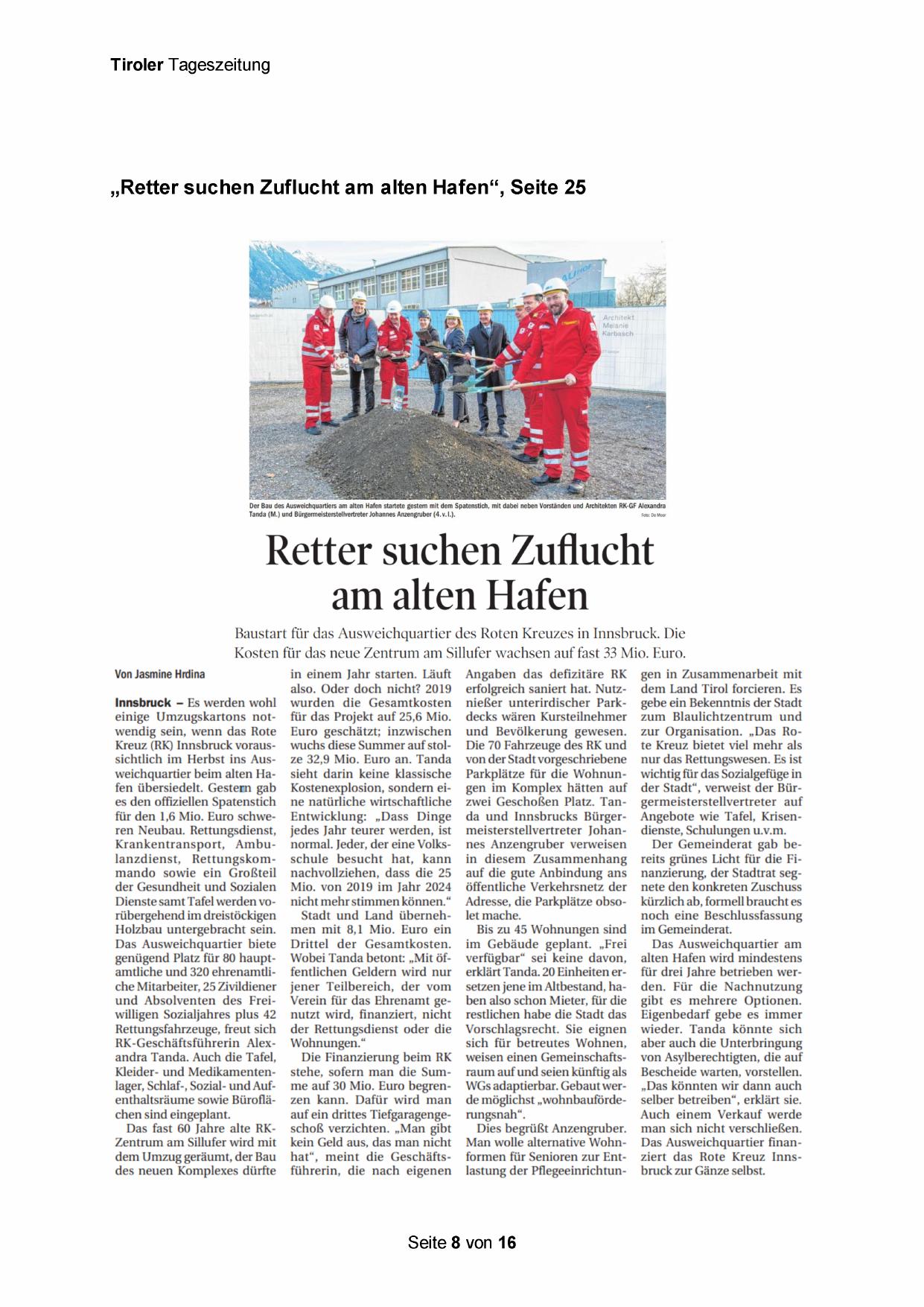 Kreuz (RK) Innsbruck voraussichtlich im Herbst ins Ausweichquartier beim alten Hafen übersiedelt. Gestern gab