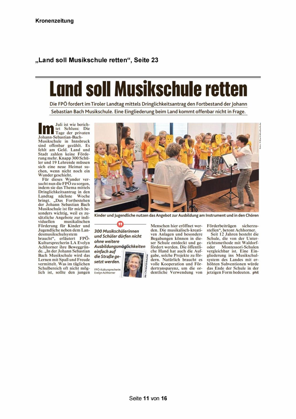 Sebastian Bach Musikschule. Eine Eingliederung beim Land kommt offenbar nicht in Frage.