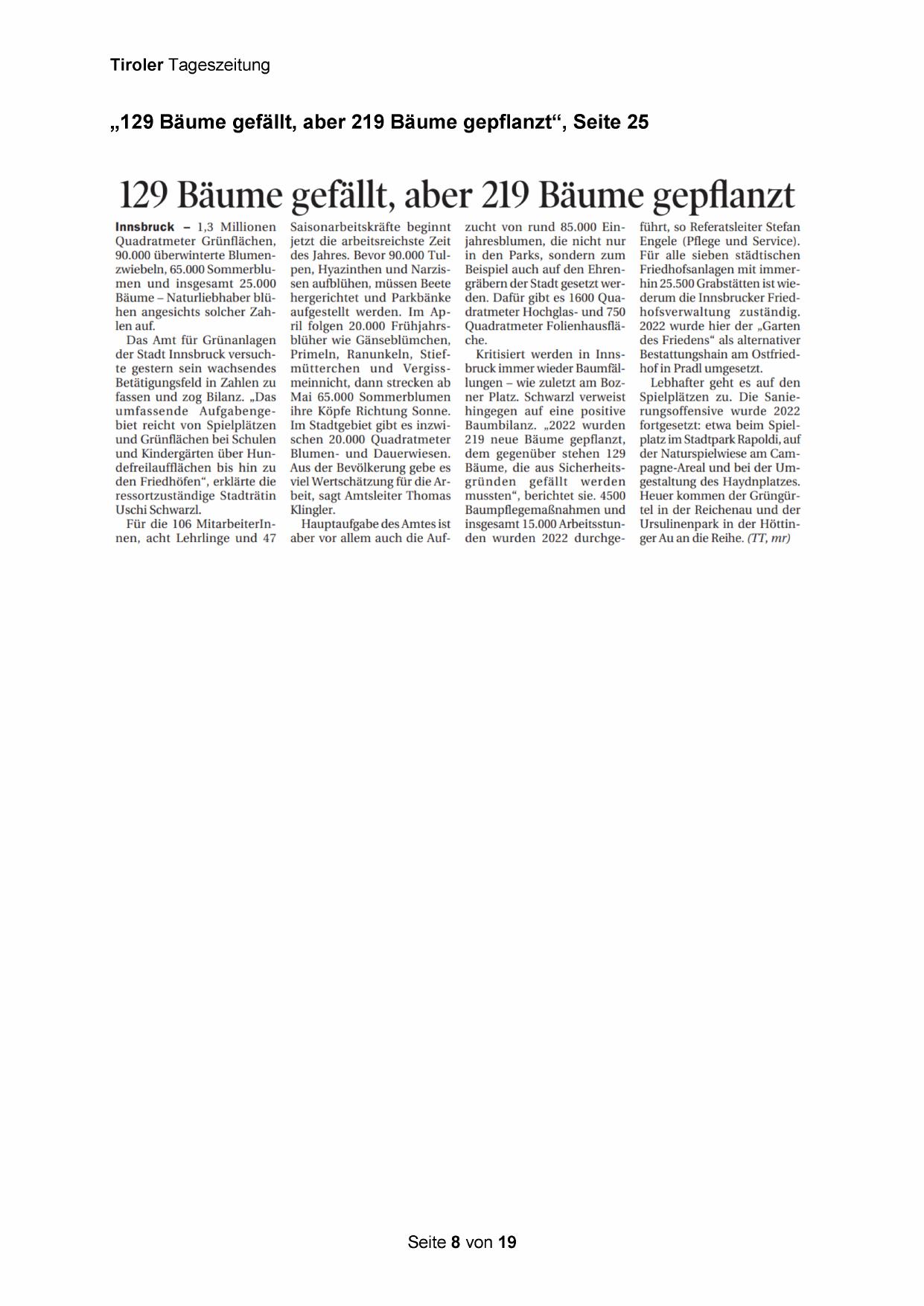 Friedhofsanlagen mit immerhin 25.500 Grabstätten ist wiederum die Innsbrucker Friedhofsverwaltung zuständig.