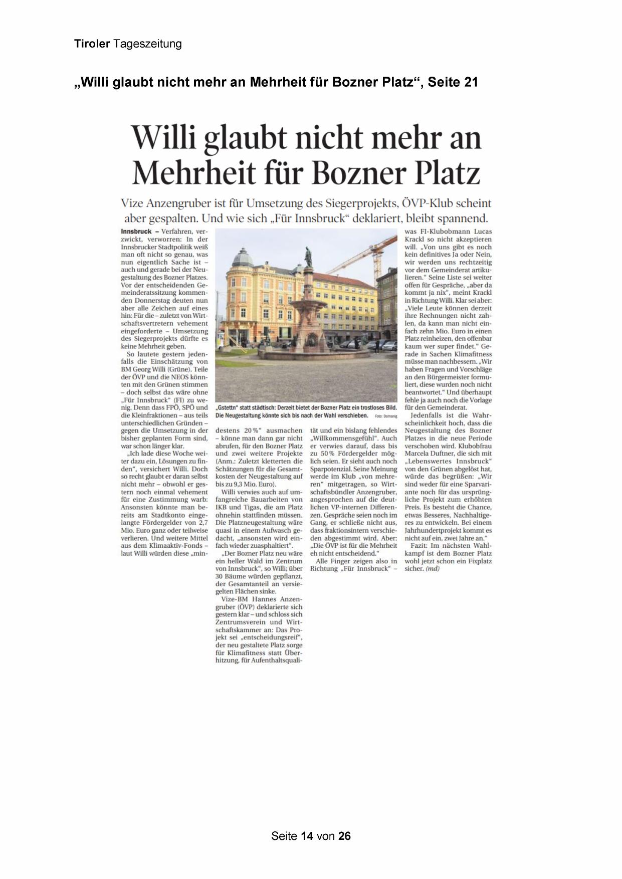 „Willi glaubt nicht mehr an Mehrheit für Bozner Platz“, Seite 21