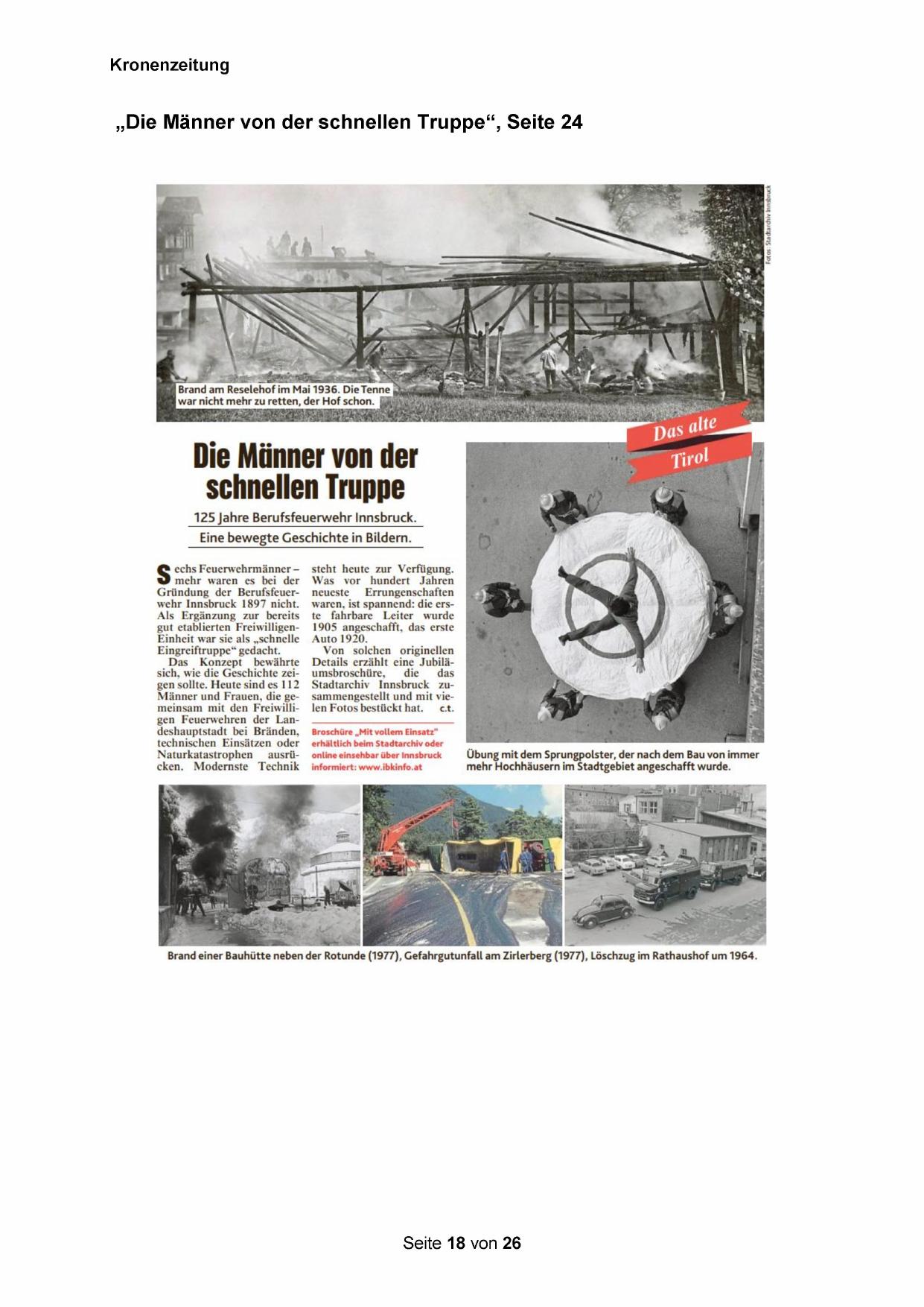 Gründung der Berufsfeuerwehr Innsbruck 1897 nicht.