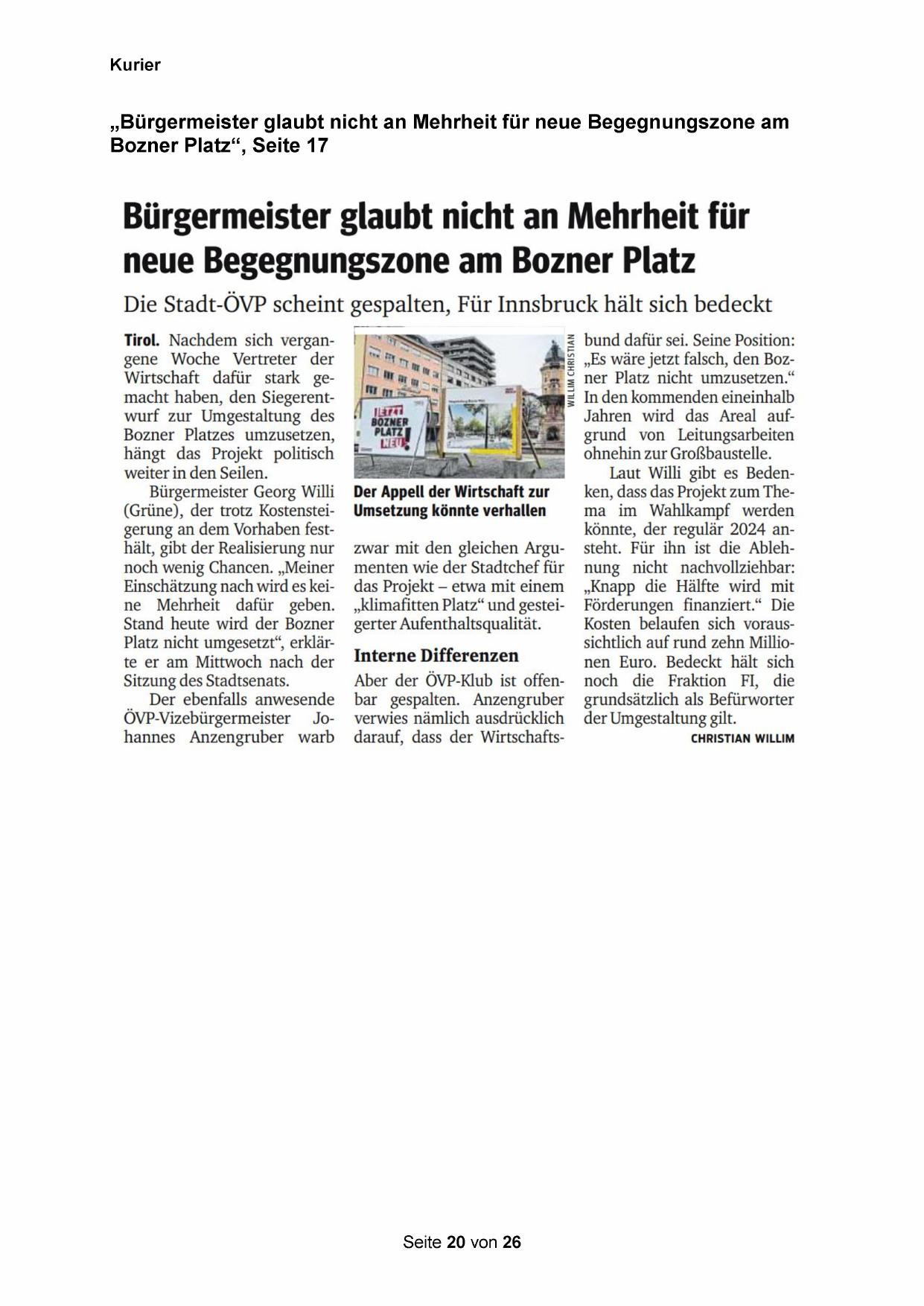 „Es wäre jetzt falsch, den Bozner Platz nicht umzusetzen.“