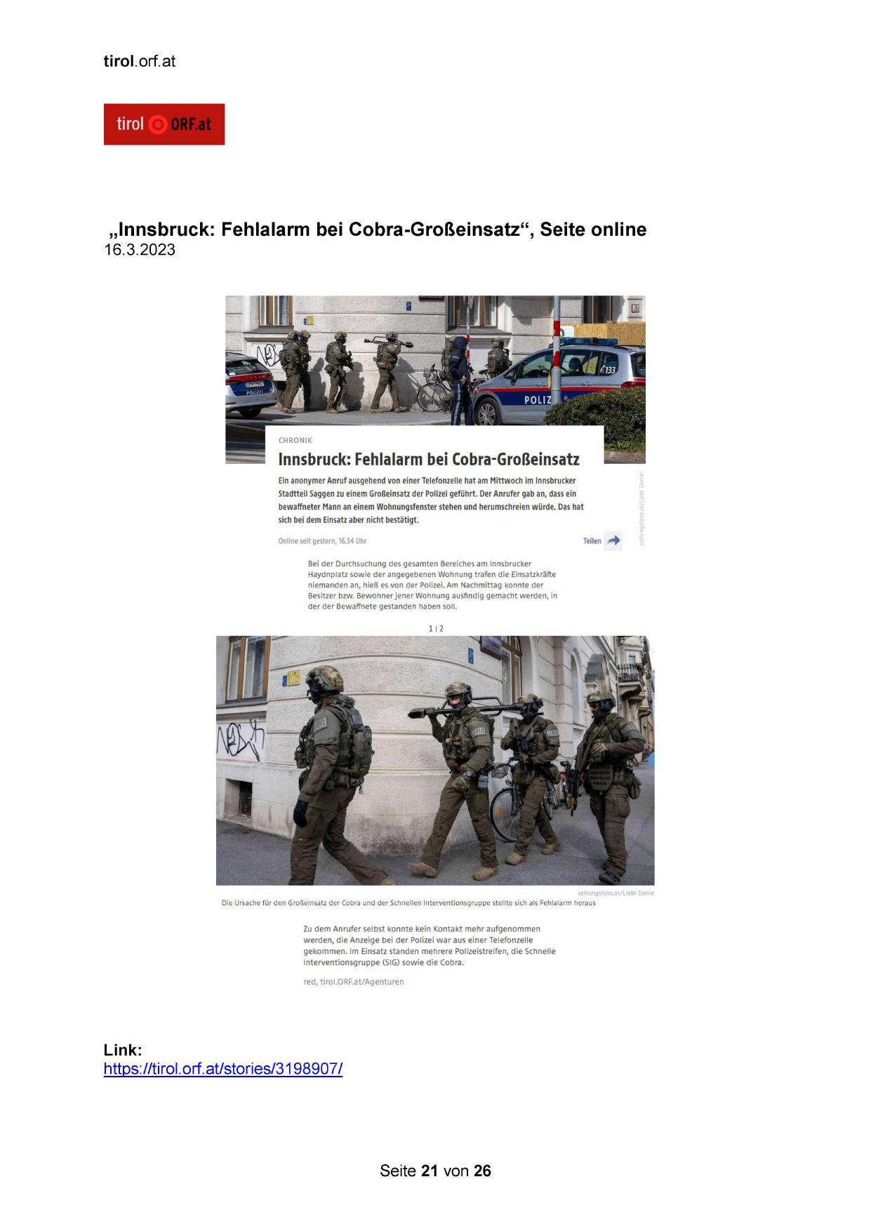 „Innsbruck: Fehlalarm bei Cobra-Großeinsatz‘“, Seite online