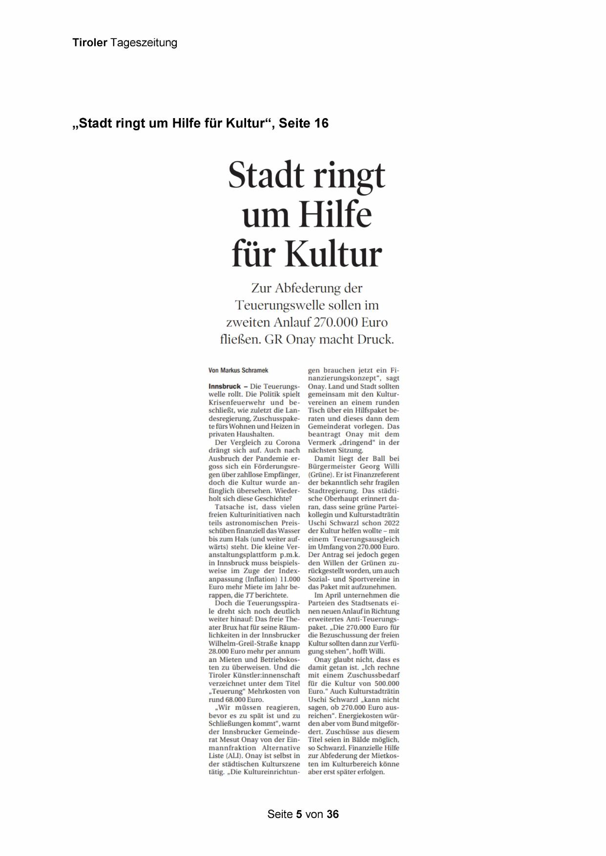 „Stadt ringt um Hilfe für Kultur“, Seite 16