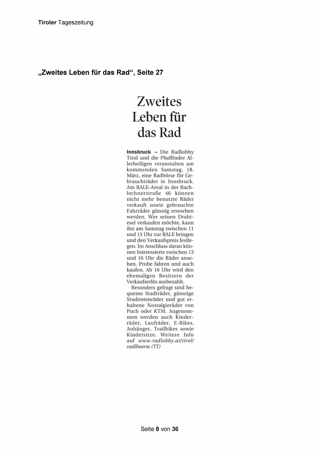März, eine Radbörse für Gebrauchträder in Innsbruck.