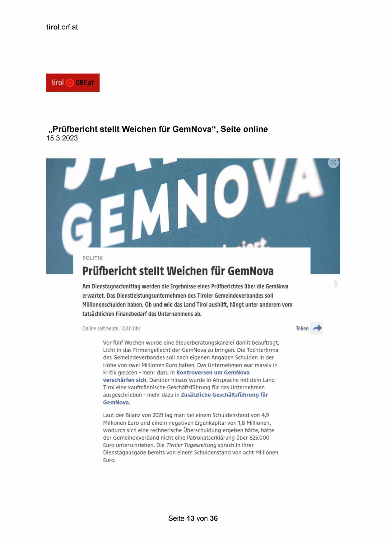 „Prüfbericht stellt Weichen für GemNova“, Seite online