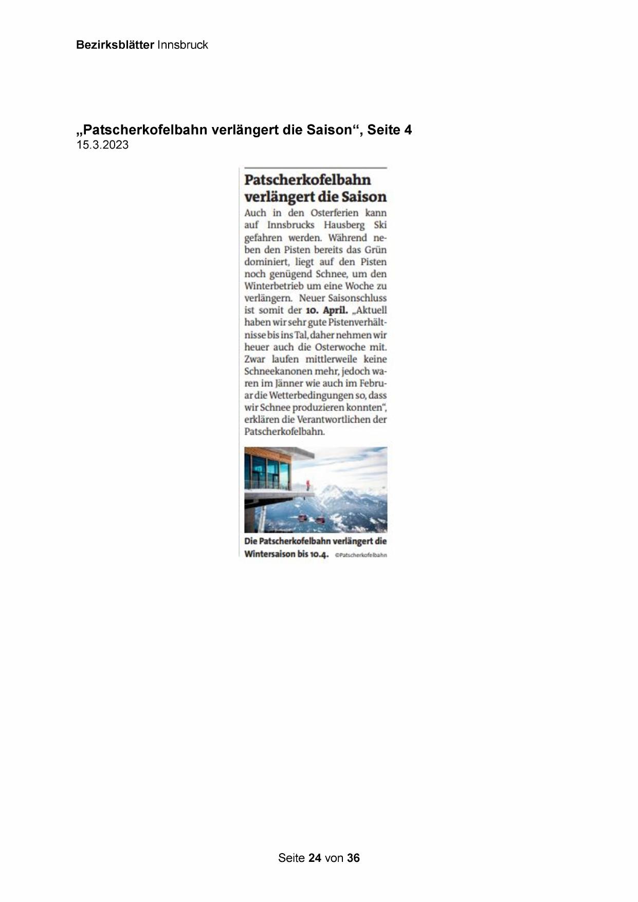 „Patscherkofelbahn verlängert die Saison“, Seite 4