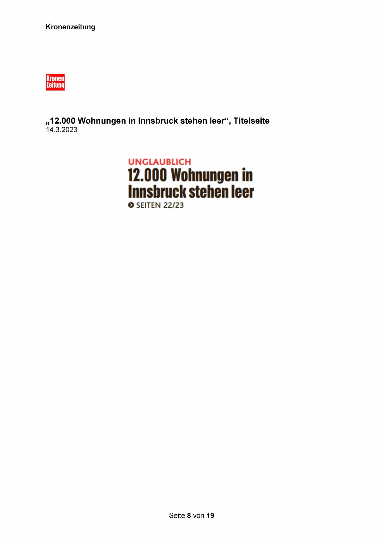 „12.000 Wohnungen in Innsbruck stehen leer“, Titelseite