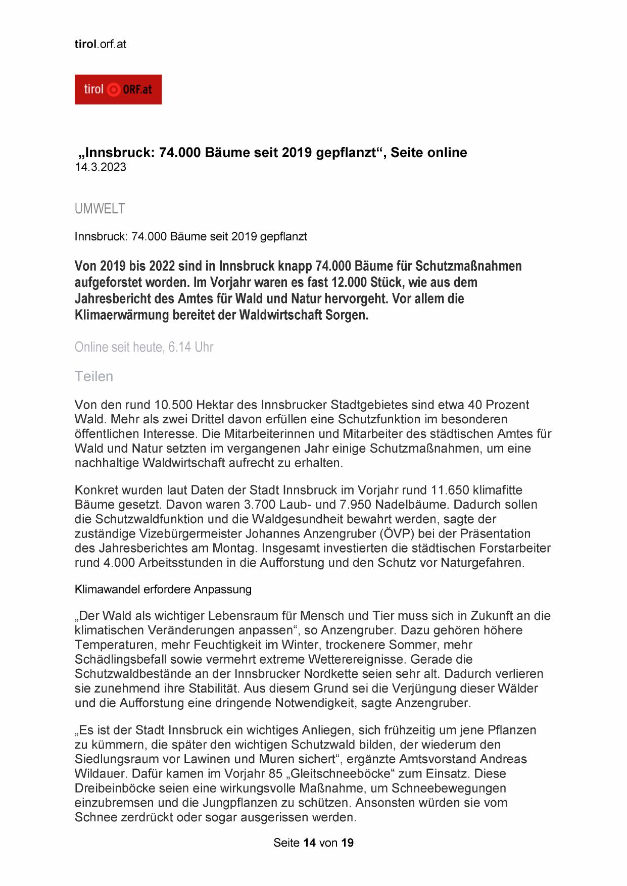 „Innsbruck: 74.000 Bäume seit 2019 gepflanzt“, Seite online