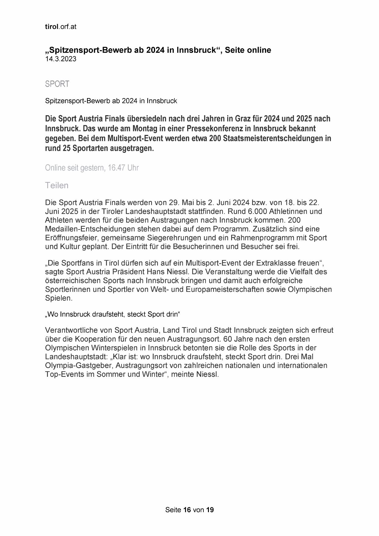 „Spitzensport-Bewerb ab 2024 in Innsbruck“, Seite online