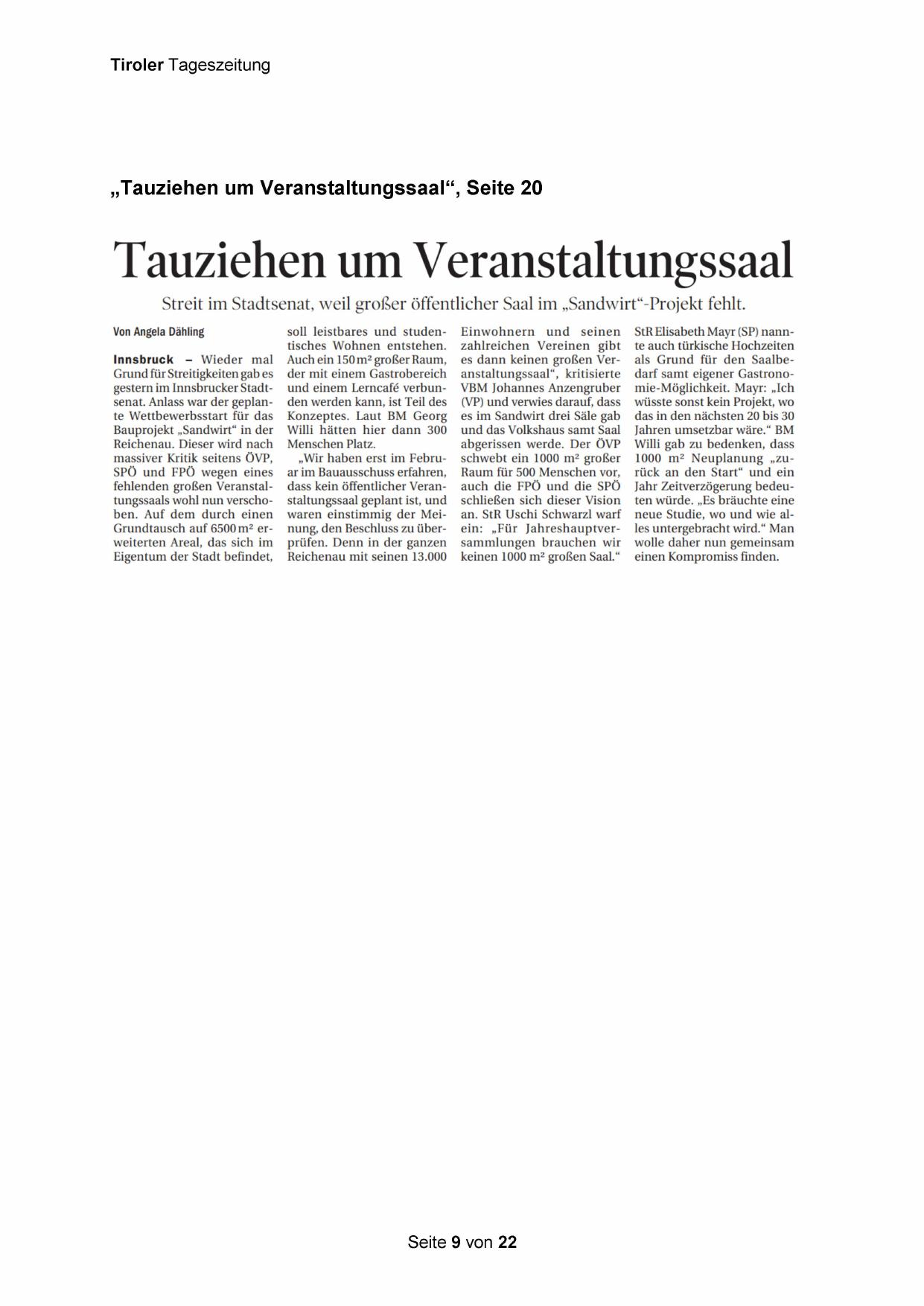 „Tauziehen um Veranstaltungssaal“, Seite 20