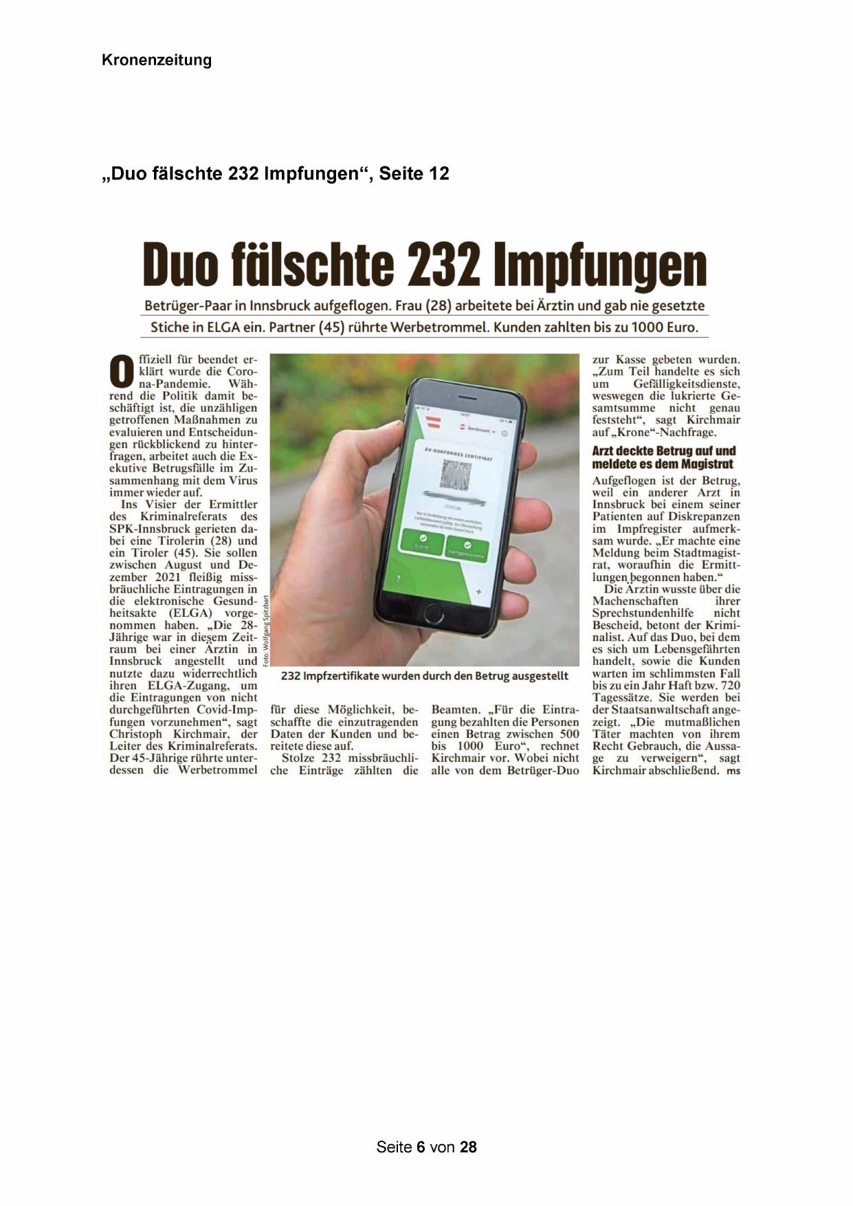 „Duo fälschte 232 Impfungen“, Seite 12