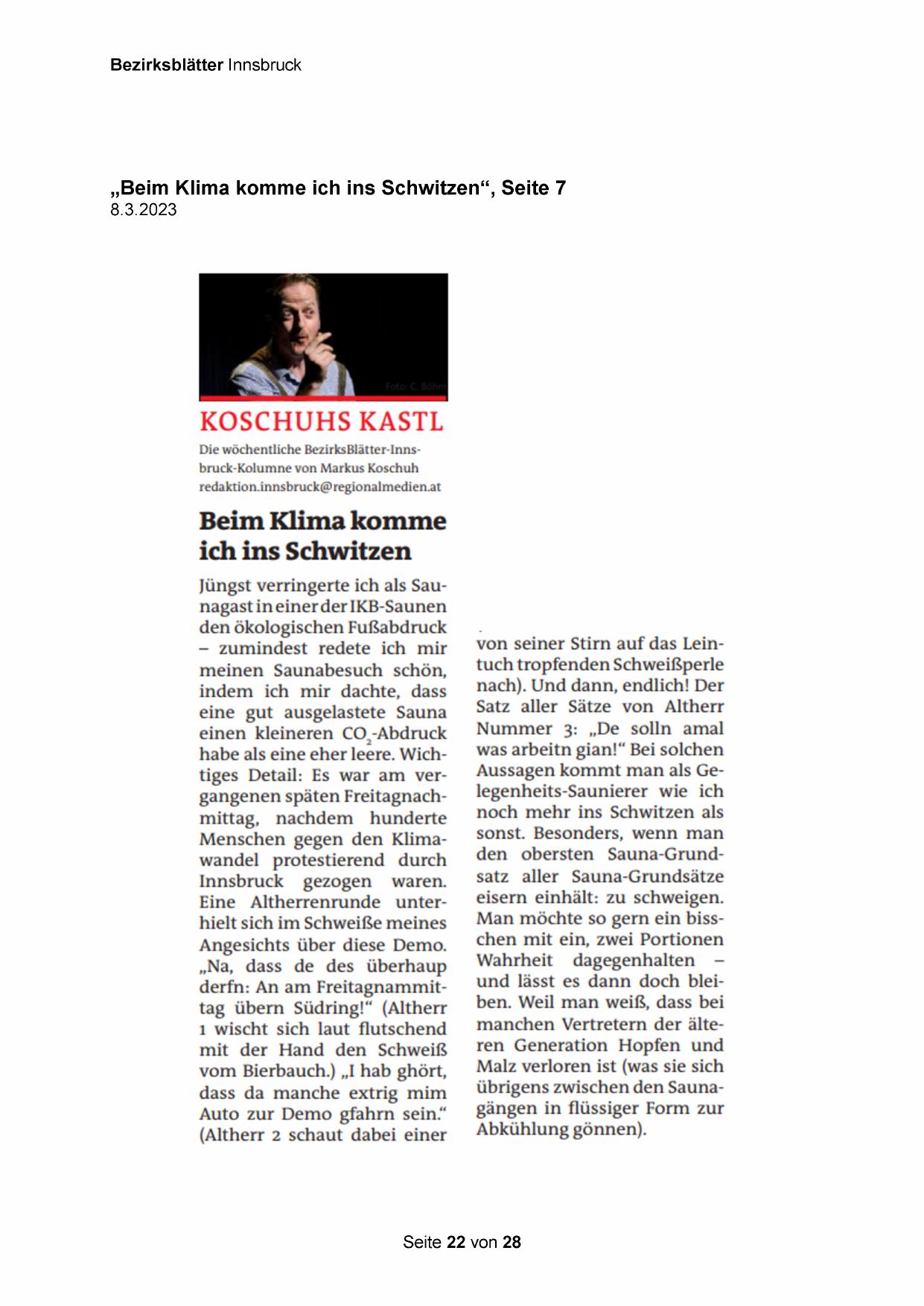 Die wöchentliche BezirksBlätter-Innsbruck-Kolumne von Markus Koschuh