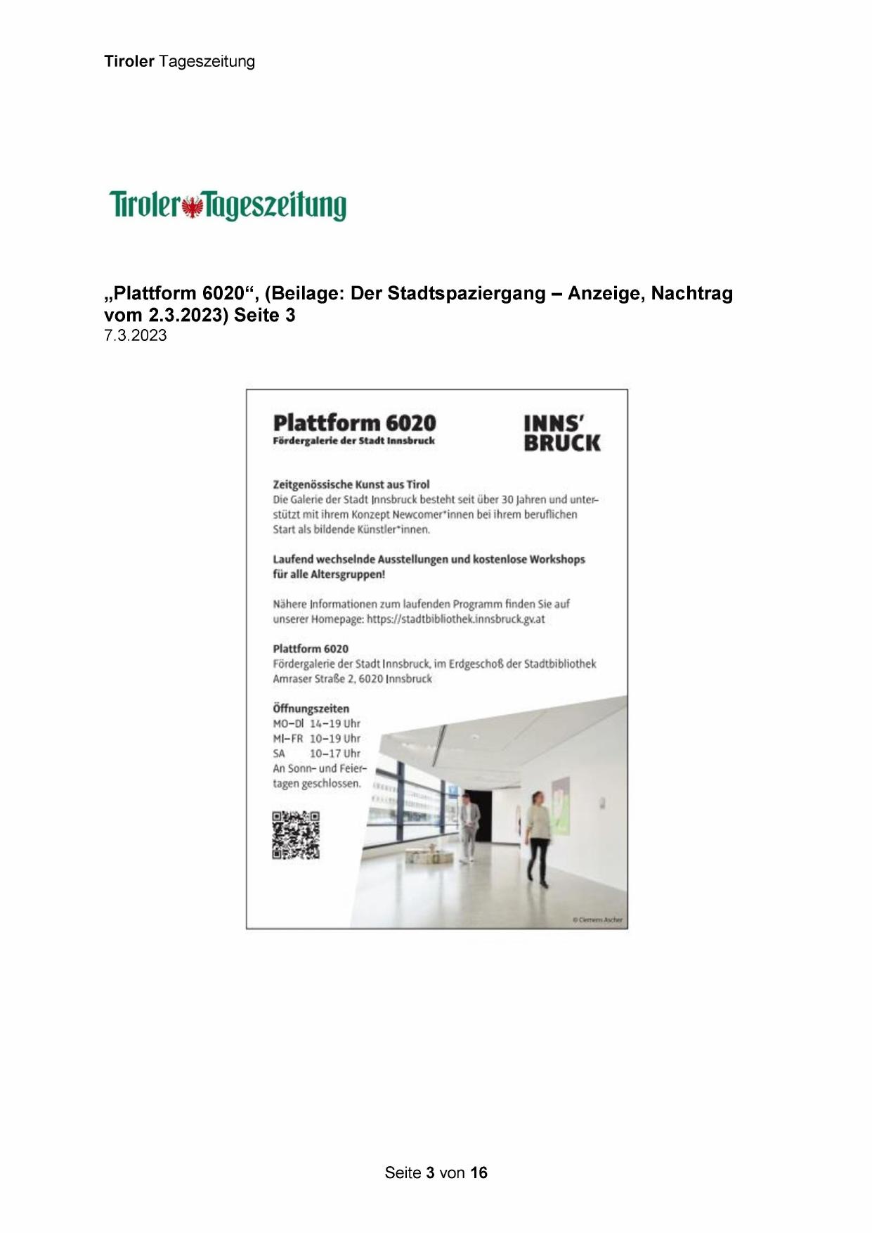 „Plattform 6020“, (Beilage: Der Stadtspaziergang - Anzeige, Nachtrag