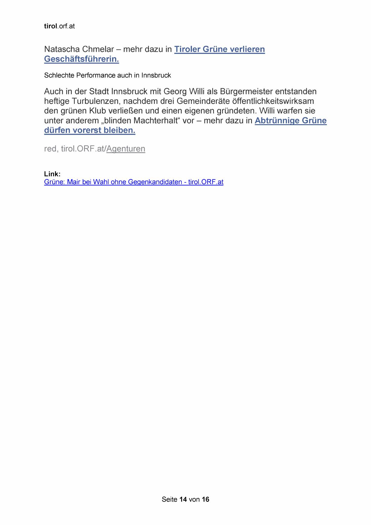 Grüne: Mair bei Wahl ohne Gegenkandidaten - tirol.ORF.at