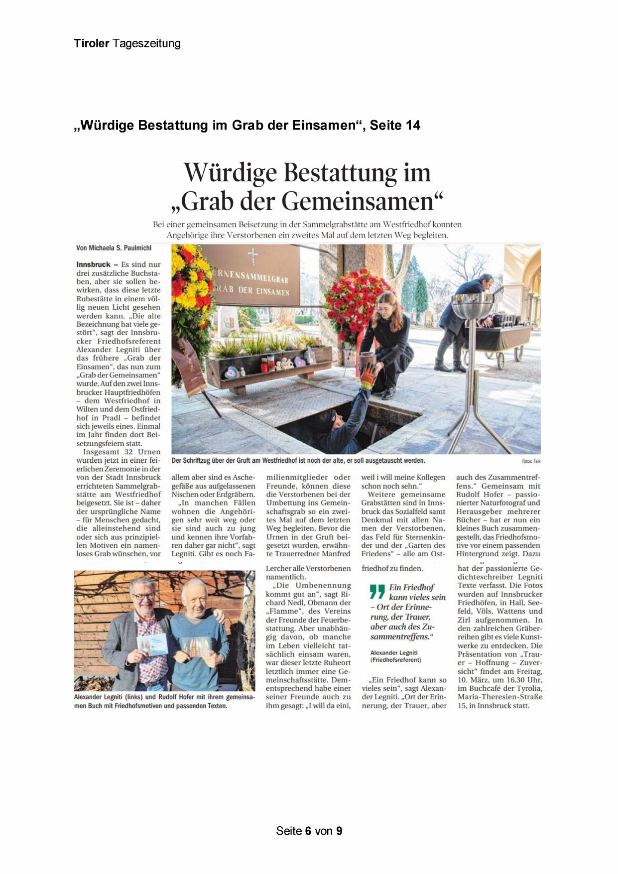 wurde. Auf den zwei Innsbrucker Hauptfriedhöfen
