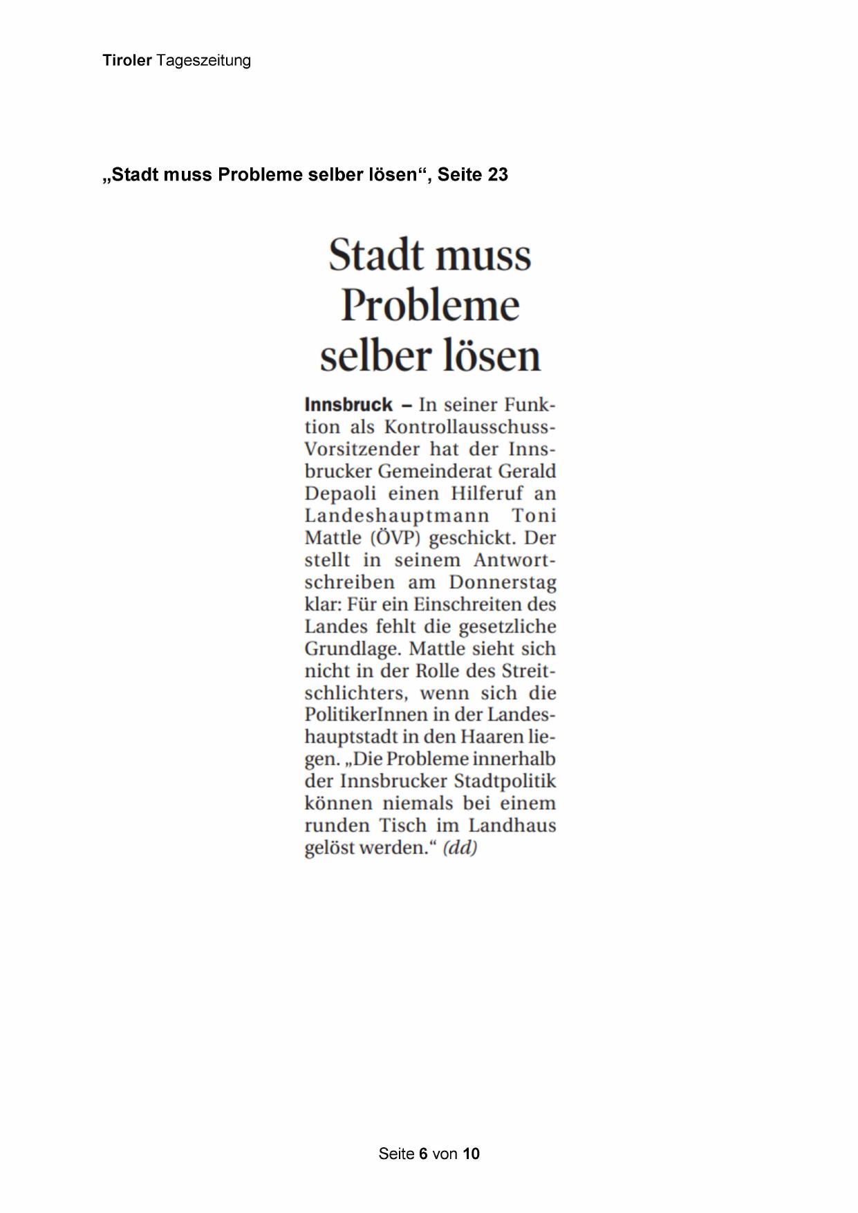 Innsbruck —- In seiner Funktion als Kontrollausschuss-