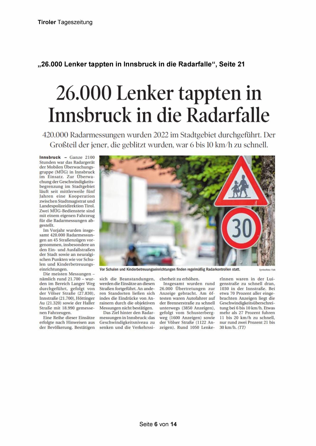 „26.000 Lenker tappten in Innsbruck in die Radarfalle‘“, Seite 21