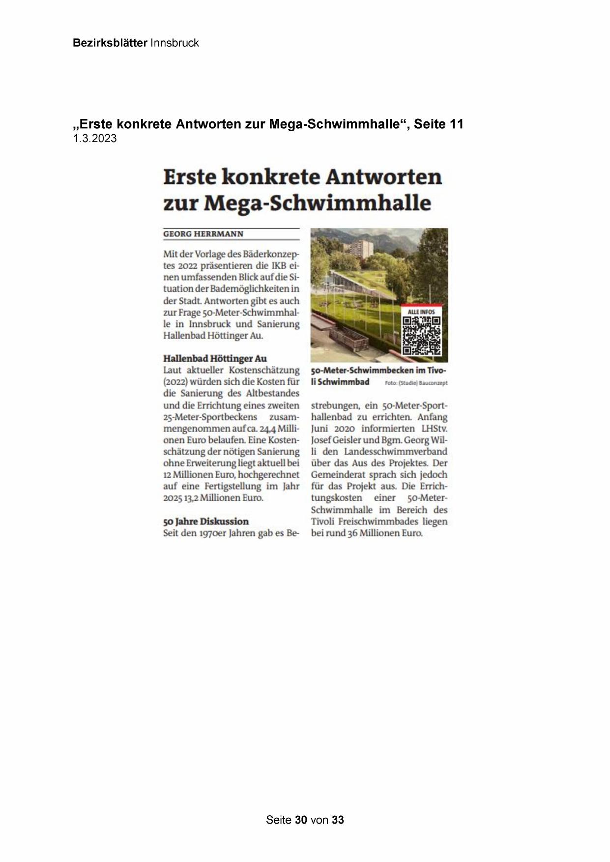 zur Frage 50-Meter-Schwimmhalle in Innsbruck und Sanierung