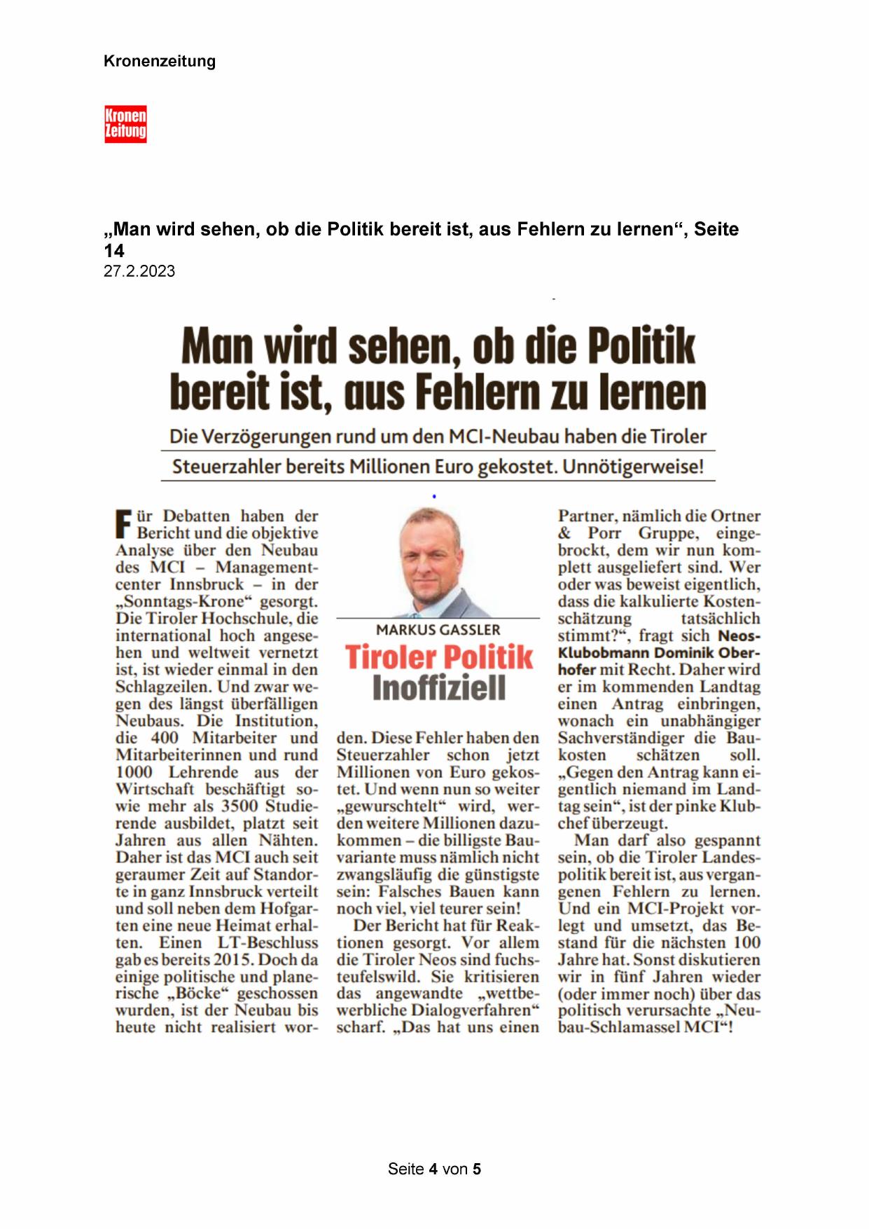 sein, ob die Tiroler Landespolitik bereit ist, aus vergangenen Fehlern zu lernen.
