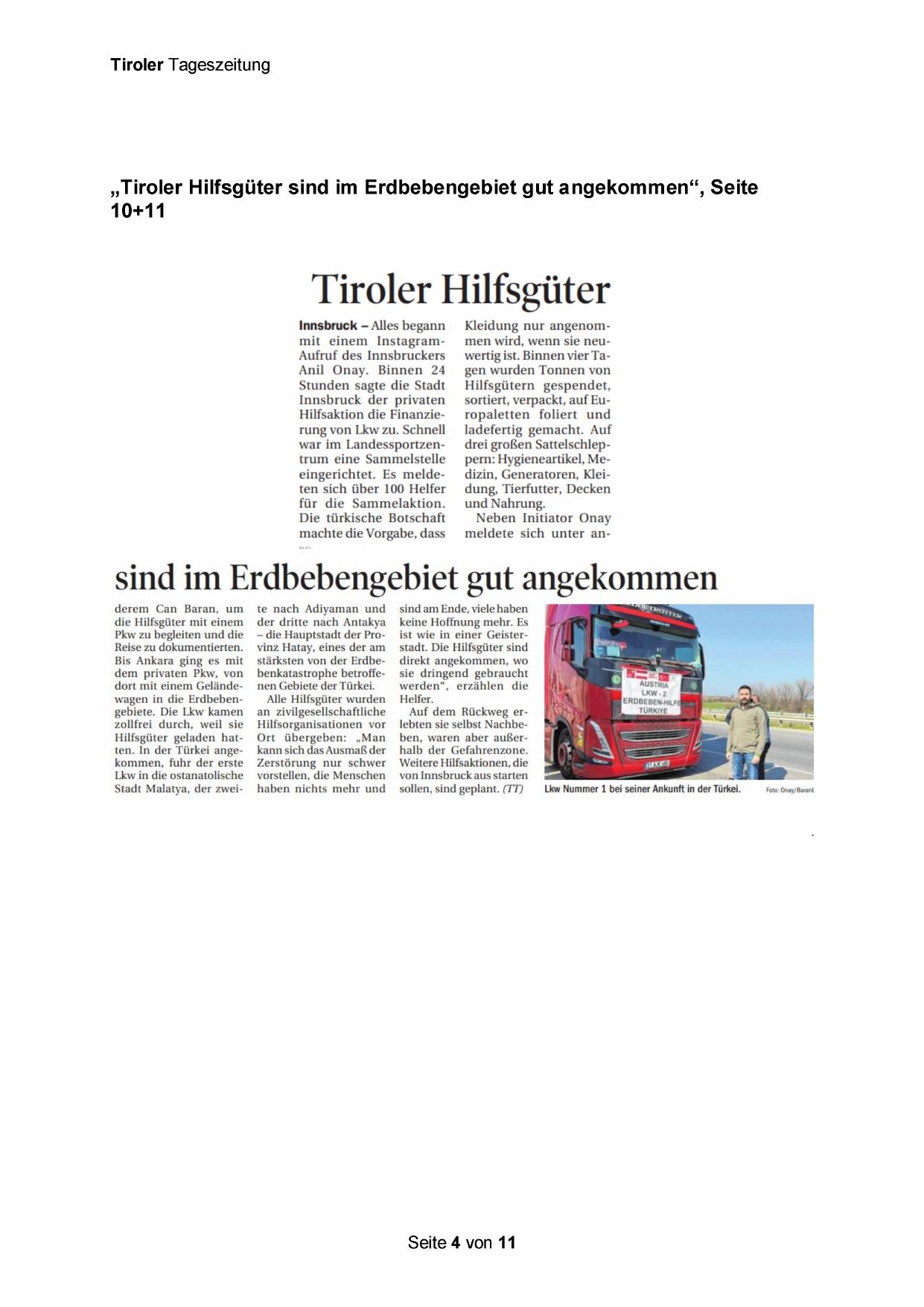 „Tiroler Hilfsgüter sind im Erdbebengebiet gut angekommen“), Seite