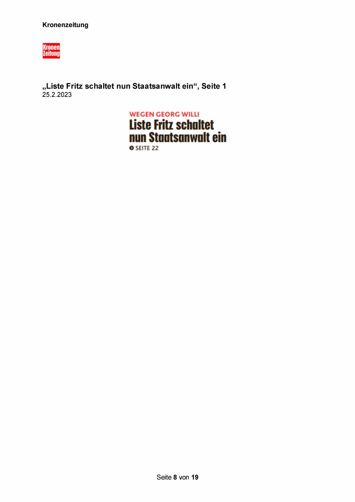 „Liste Fritz schaltet nun Staatsanwalt ein“, Seite 1