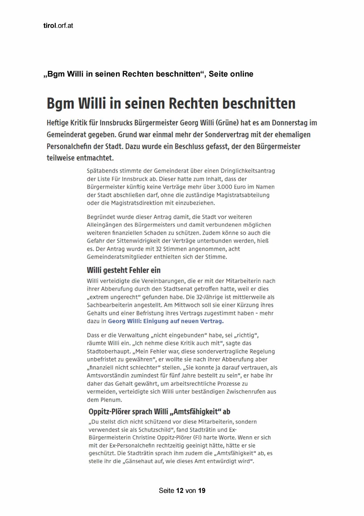 „Bgm Willi in seinen Rechten beschnitten“, Seite online