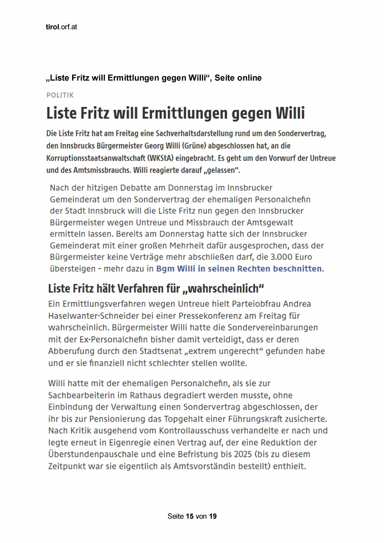 „Liste Fritz will Ermittlungen gegen Willi“, Seite online