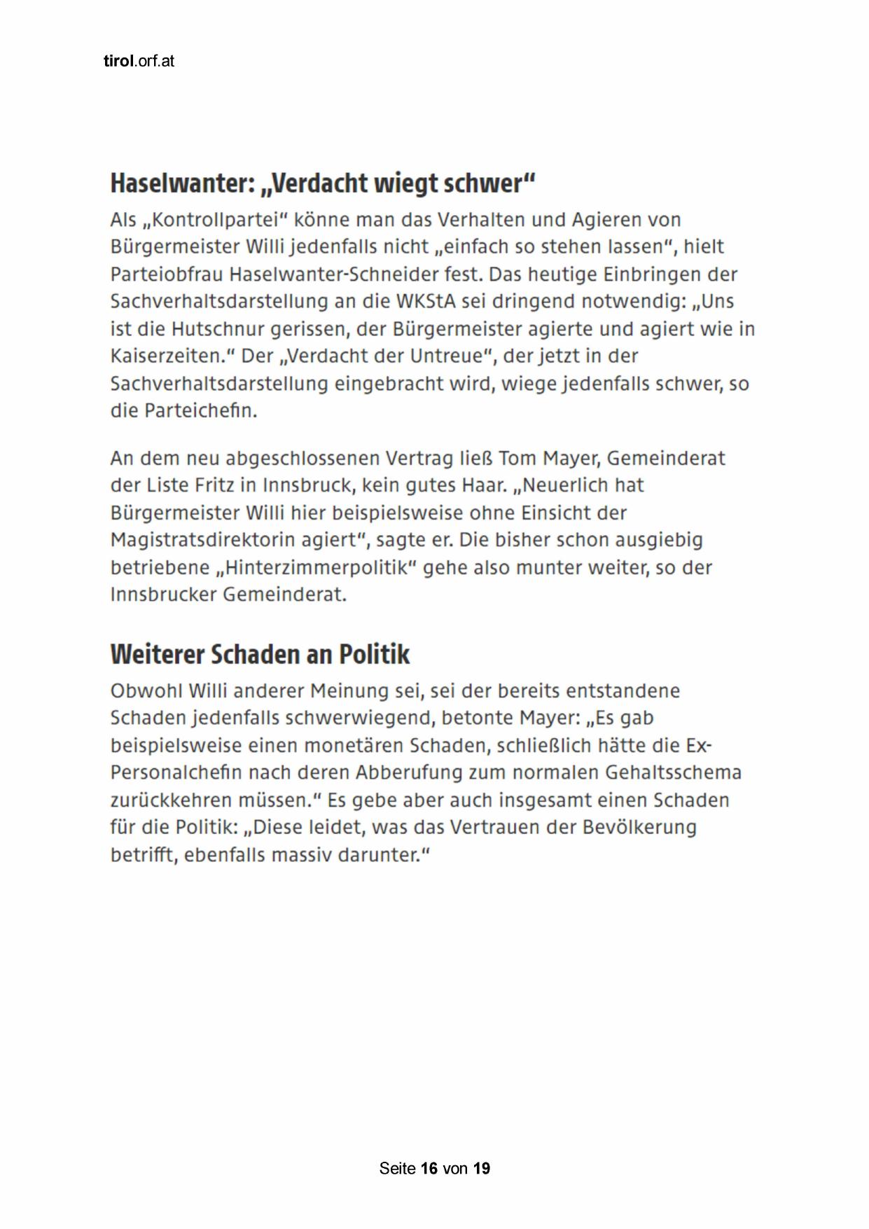der Liste Fritz in Innsbruck, kein gutes Haar. „Neuerlich hat