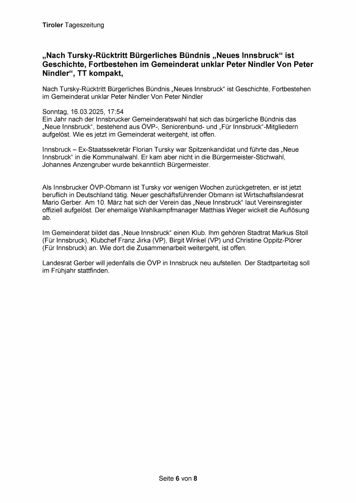 Nach Tursky-Rücktritt Bürgerliches Bündnis „Neues Innsbruck“ ist Geschichte, Fortbestehen