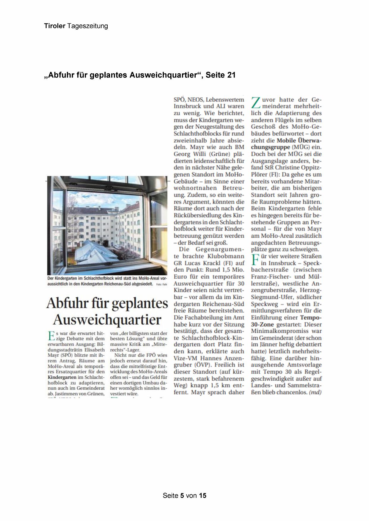 „Abfuhr für geplantes Ausweichquartier“, Seite 21