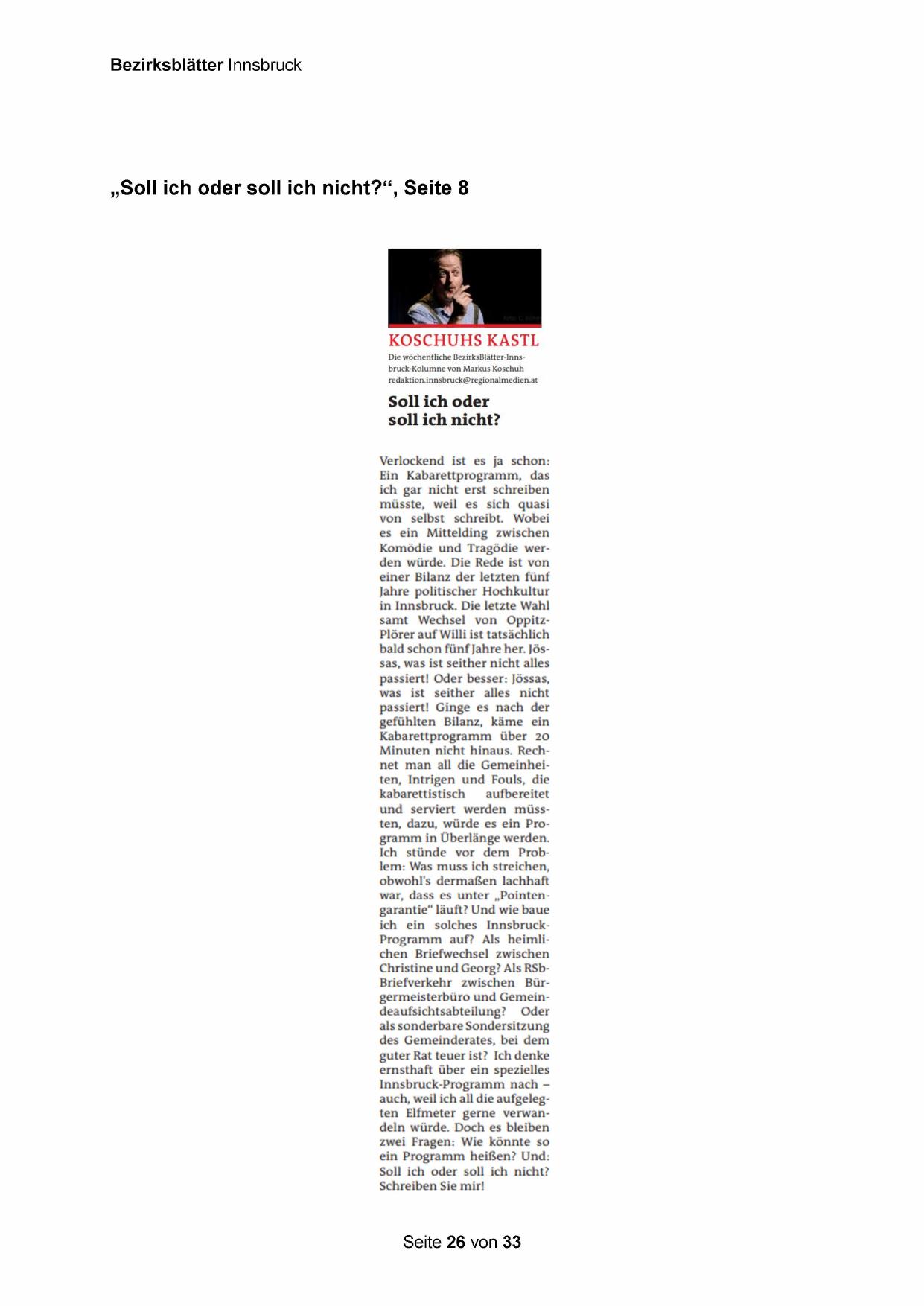Die wöchentliche BezirksBlätter-Innsbruck-Kolumne von Markus Koschuh