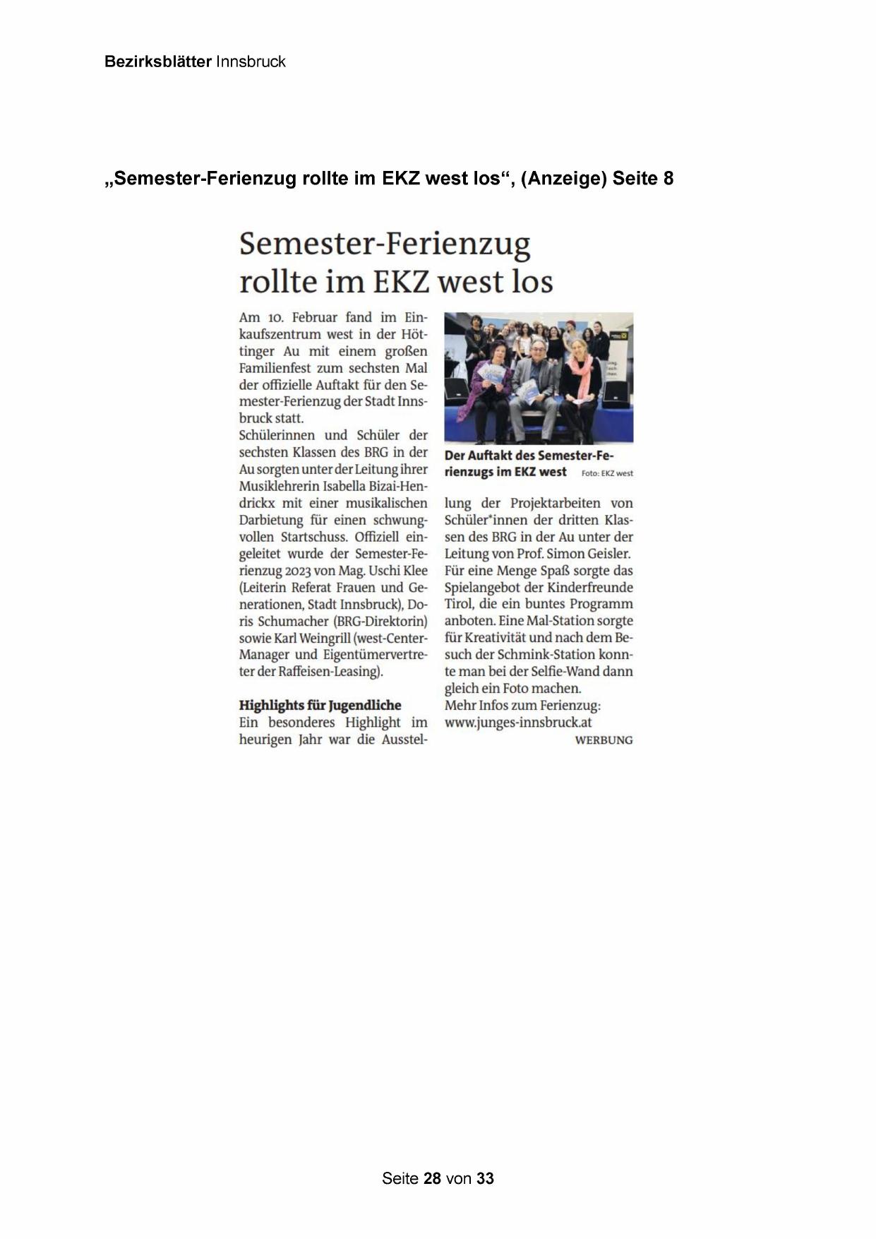 „Semester-Ferienzug rollte im EKZ west los“, (Anzeige) Seite 8