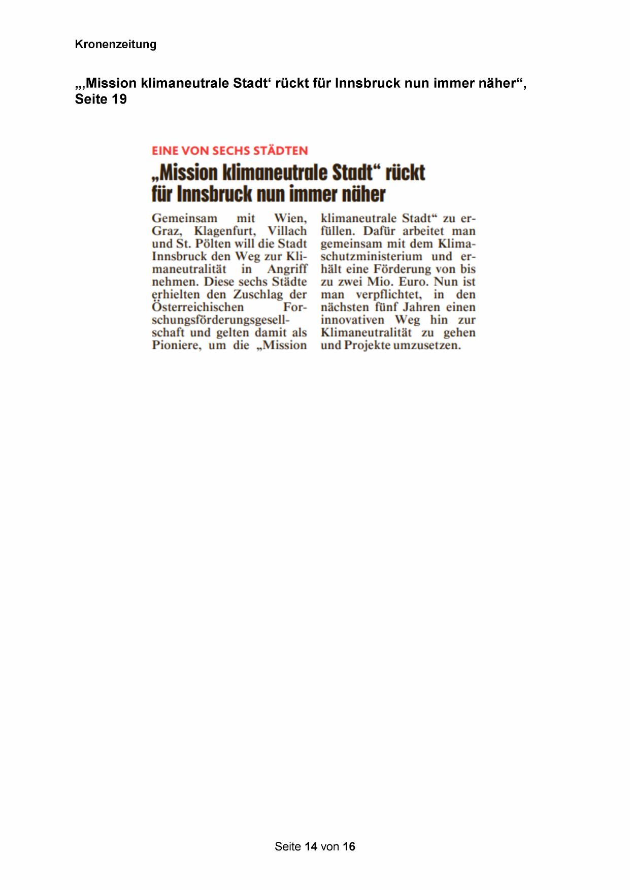 „‚Mission klimaneutrale Stadt‘ rückt für Innsbruck nun immer näher“,