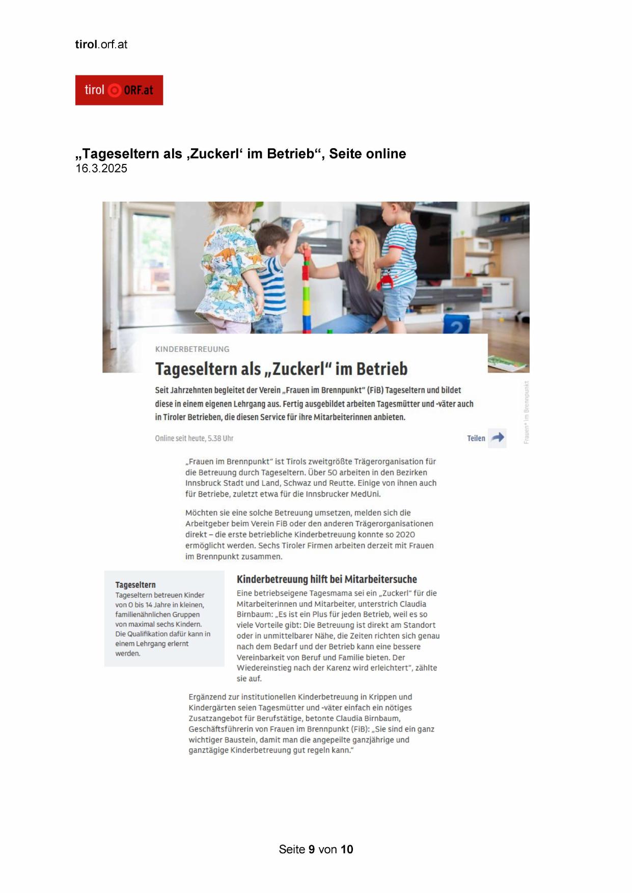 „Tageseltern als ‚Zuckerl‘ im Betrieb“, Seite online