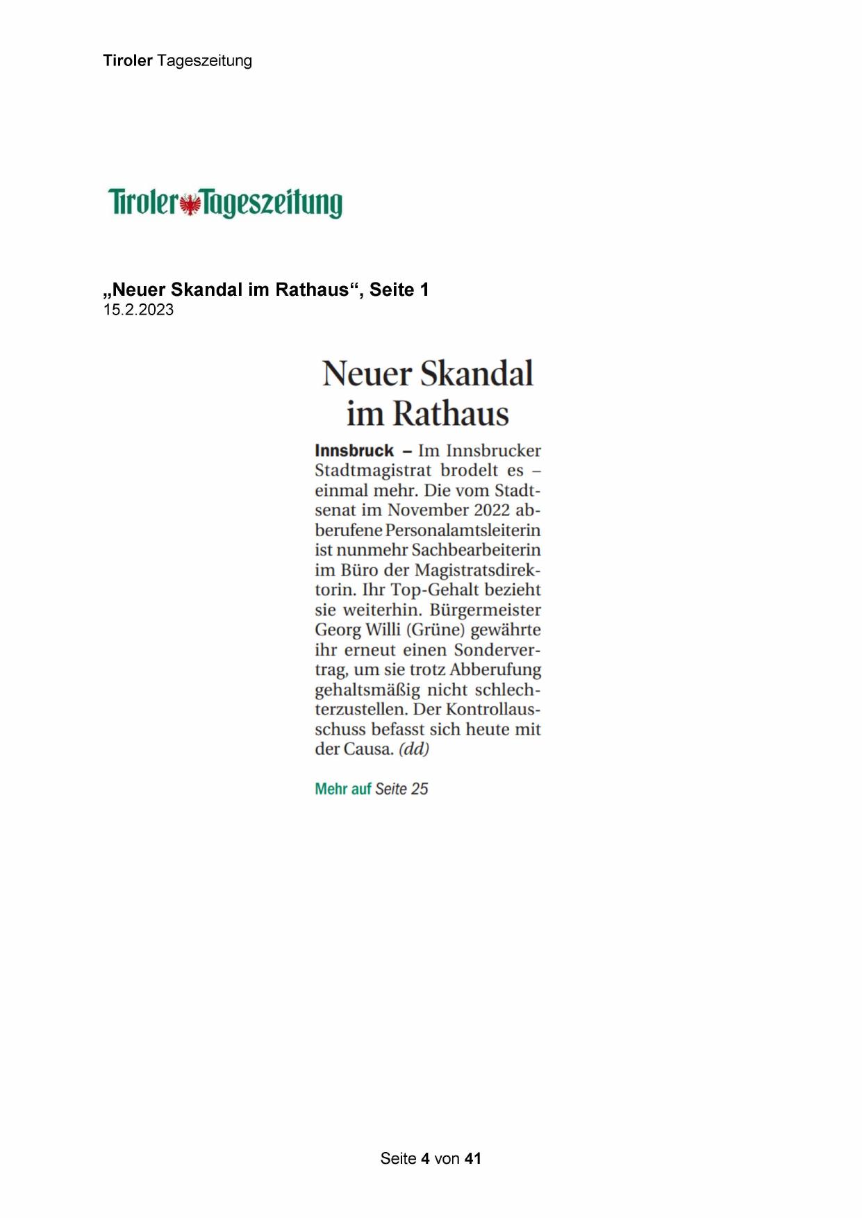 einmal mehr. Die vom Stadtsenat im November 2022 abberufene Personalamtsleiterin