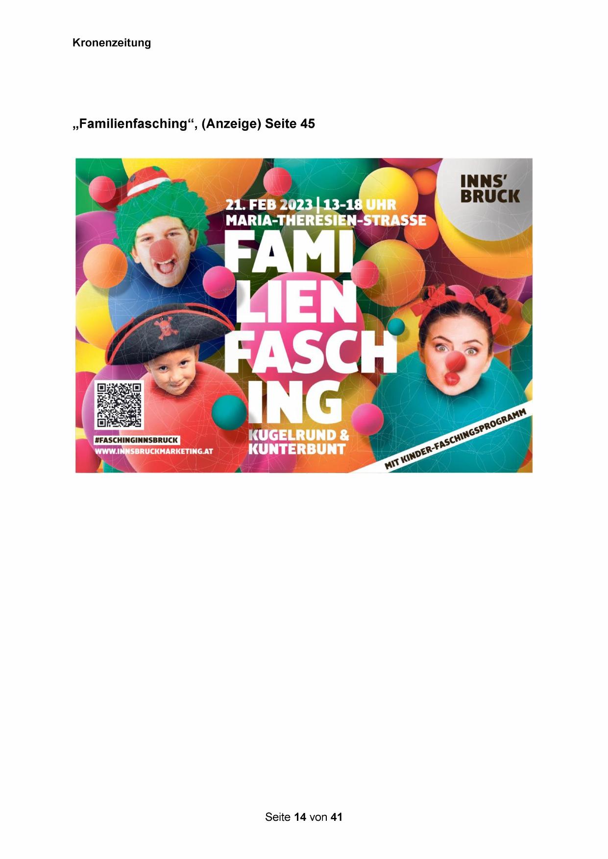 „Familienfasching“, (Anzeige) Seite 45
