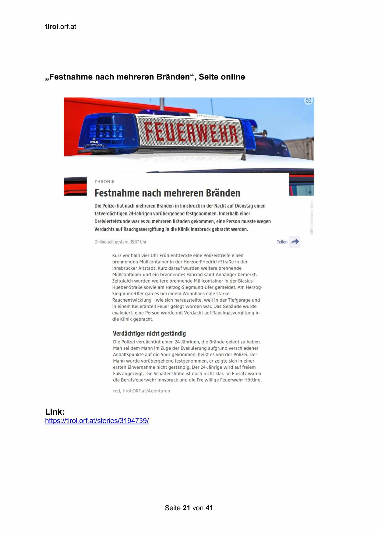 Innsbrucker Altstadt. Kurz darauf wurden weitere brennende
