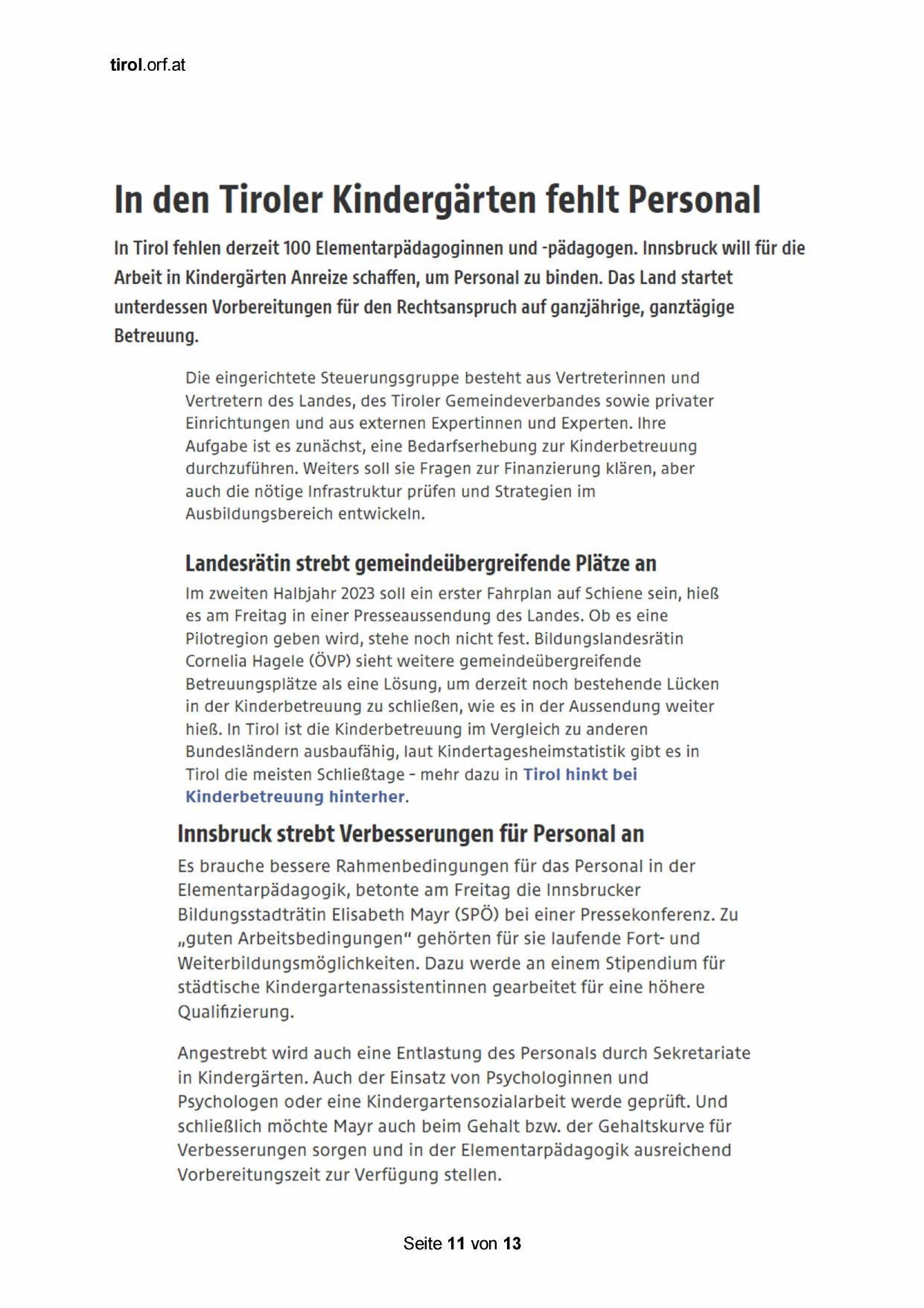 hieß. In Tirol ist die Kinderbetreuung im Vergleich zu anderen