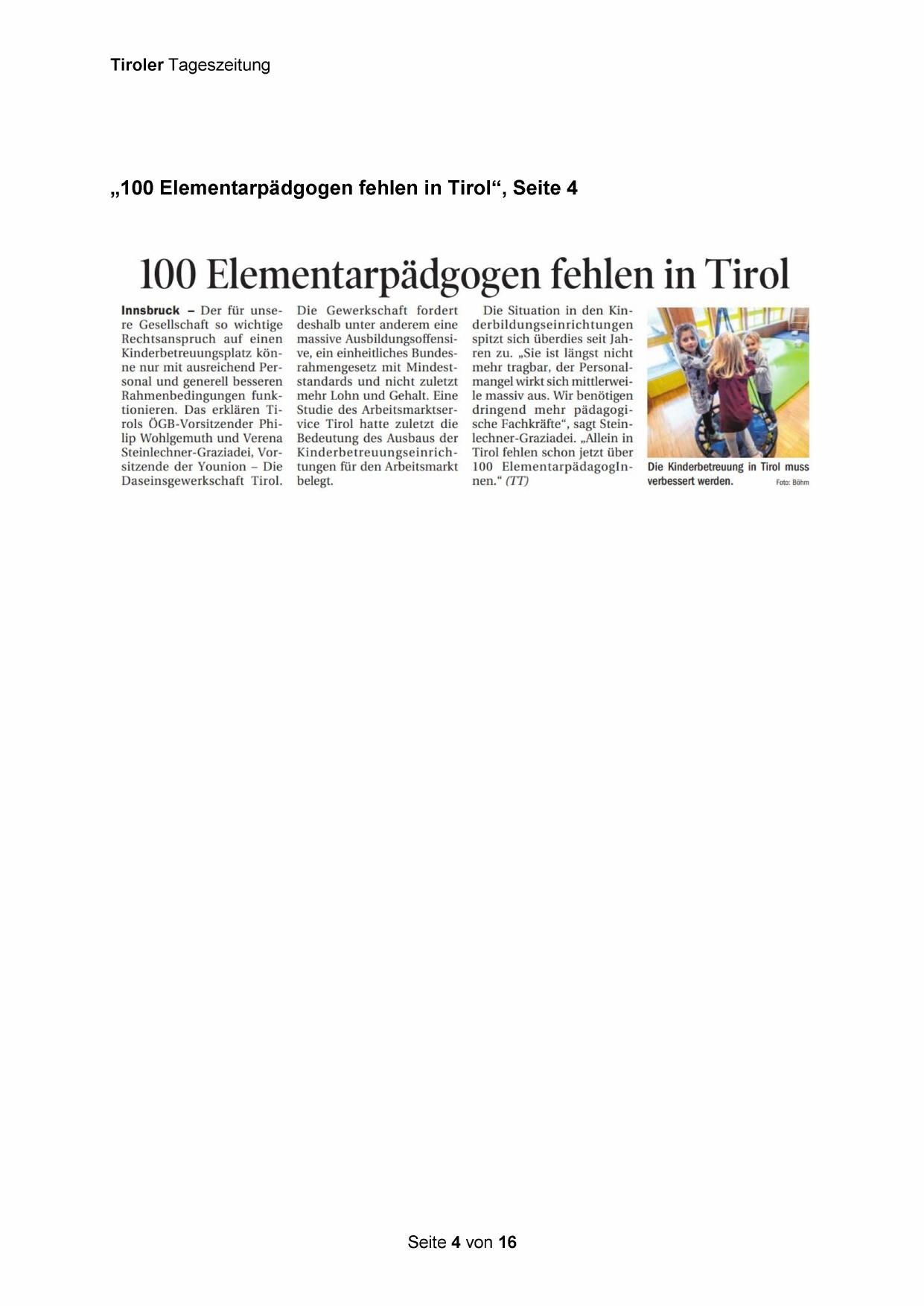 „100 Elementarpädgogen fehlen in Tirol“, Seite 4