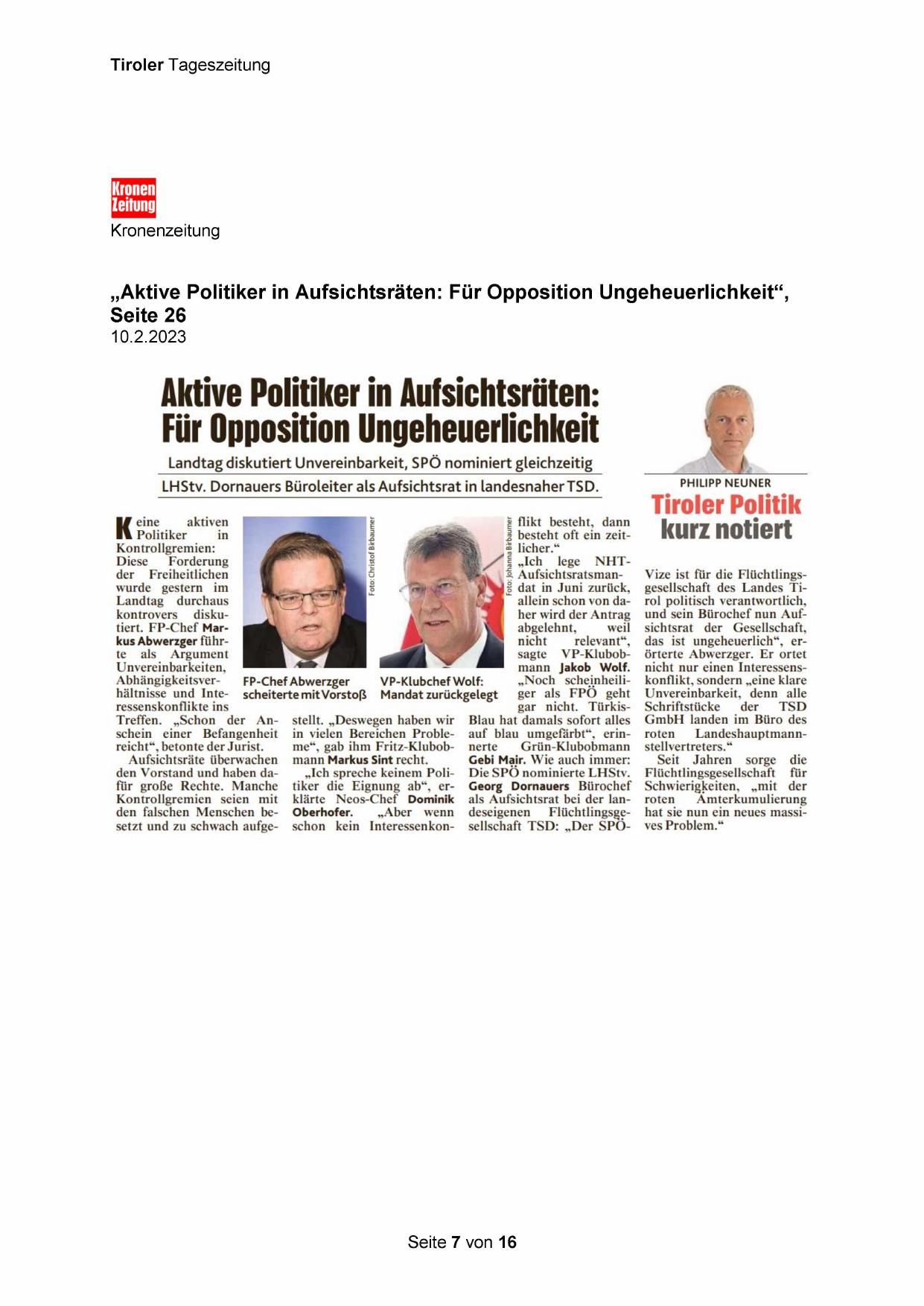 LHStv. Dornauers Büroleiter als Aufsichtsrat in landesnaher TSD.