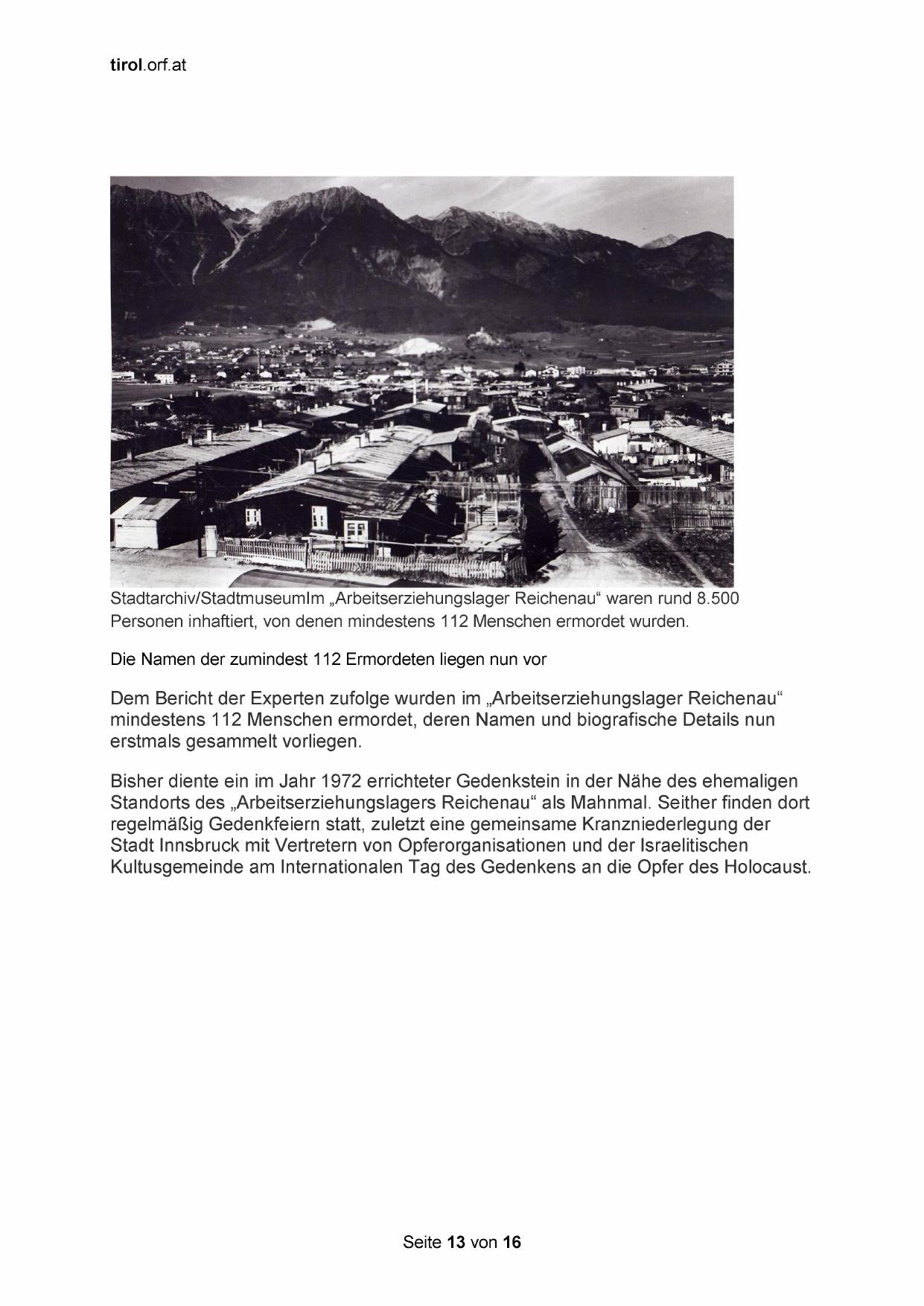 Dem Bericht der Experten zufolge wurden im „Arbeitserziehungslager Reichenau“