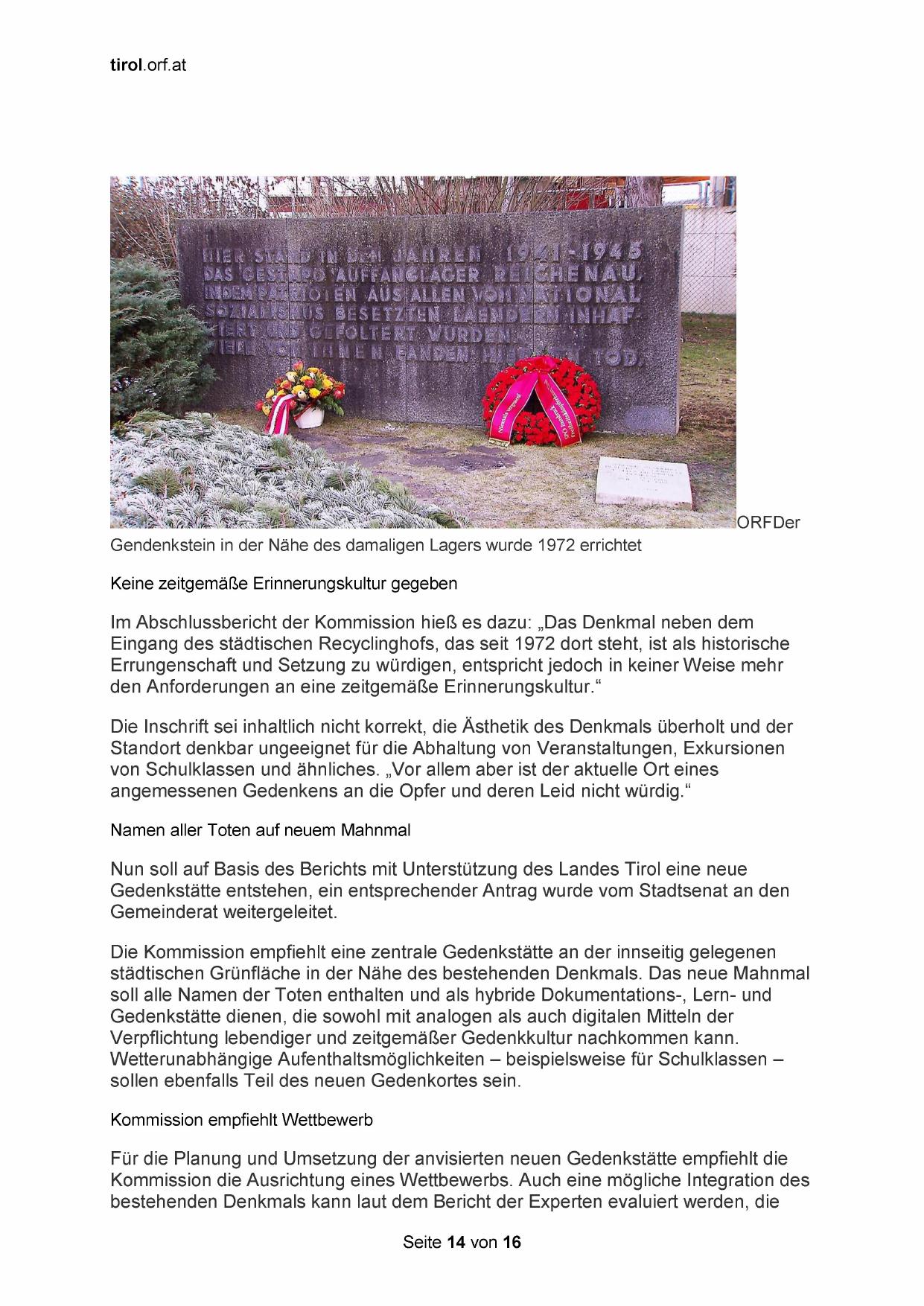 Gedenkstätte entstehen, ein entsprechender Antrag wurde vom Stadtsenat an den