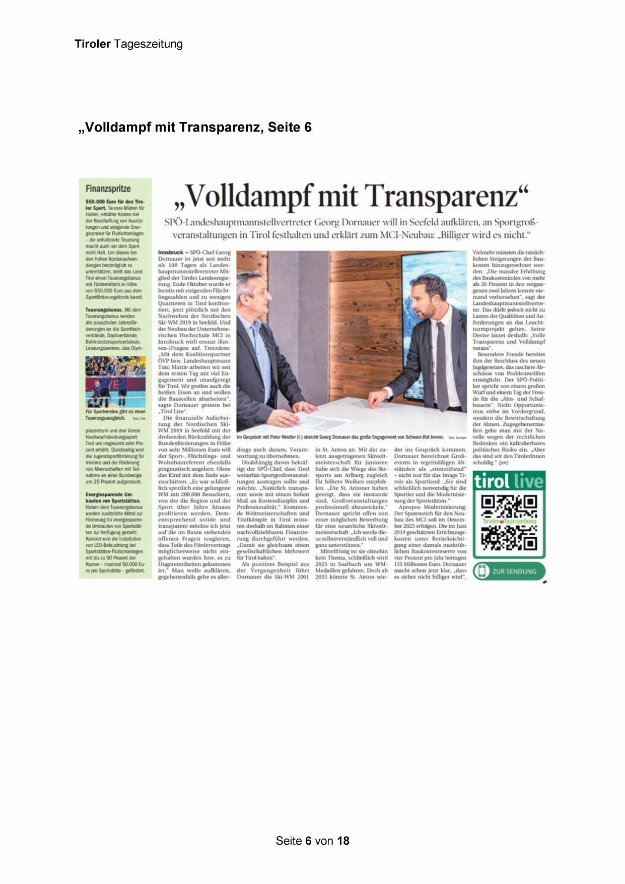 SPÖ-Landeshauptmannstellvertreter Georg Dornauer will in Seefeld aufklären, an Sportgroß-