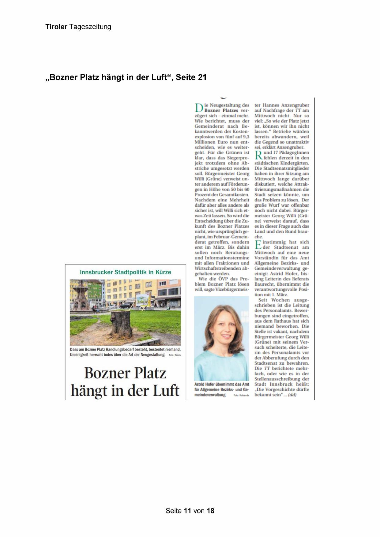noch nicht dabei. Bürgermeister Georg Willi (Grüne) verweist darauf, dass