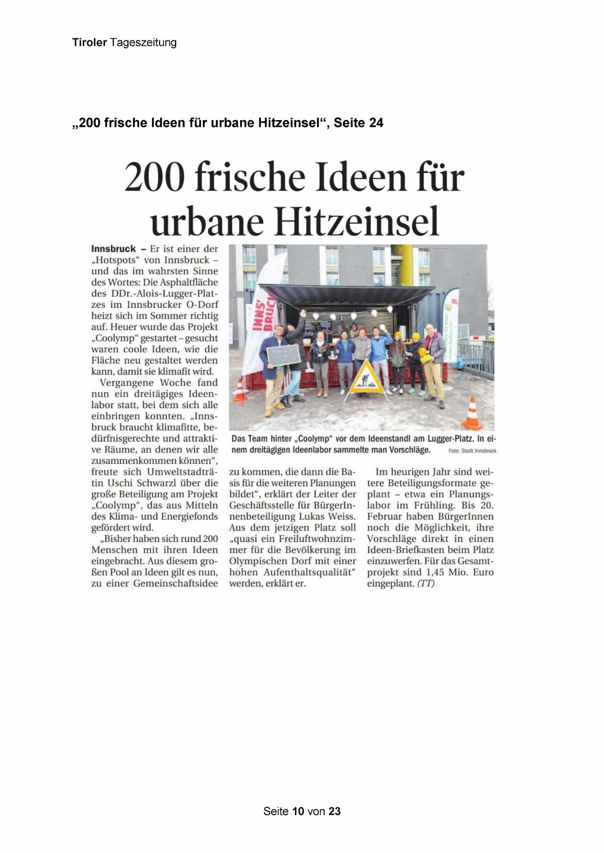 einbringen konnten. „Innsbruck braucht klimafitte, bedürfnisgerechte und attraktive Räume, an denen wir alle