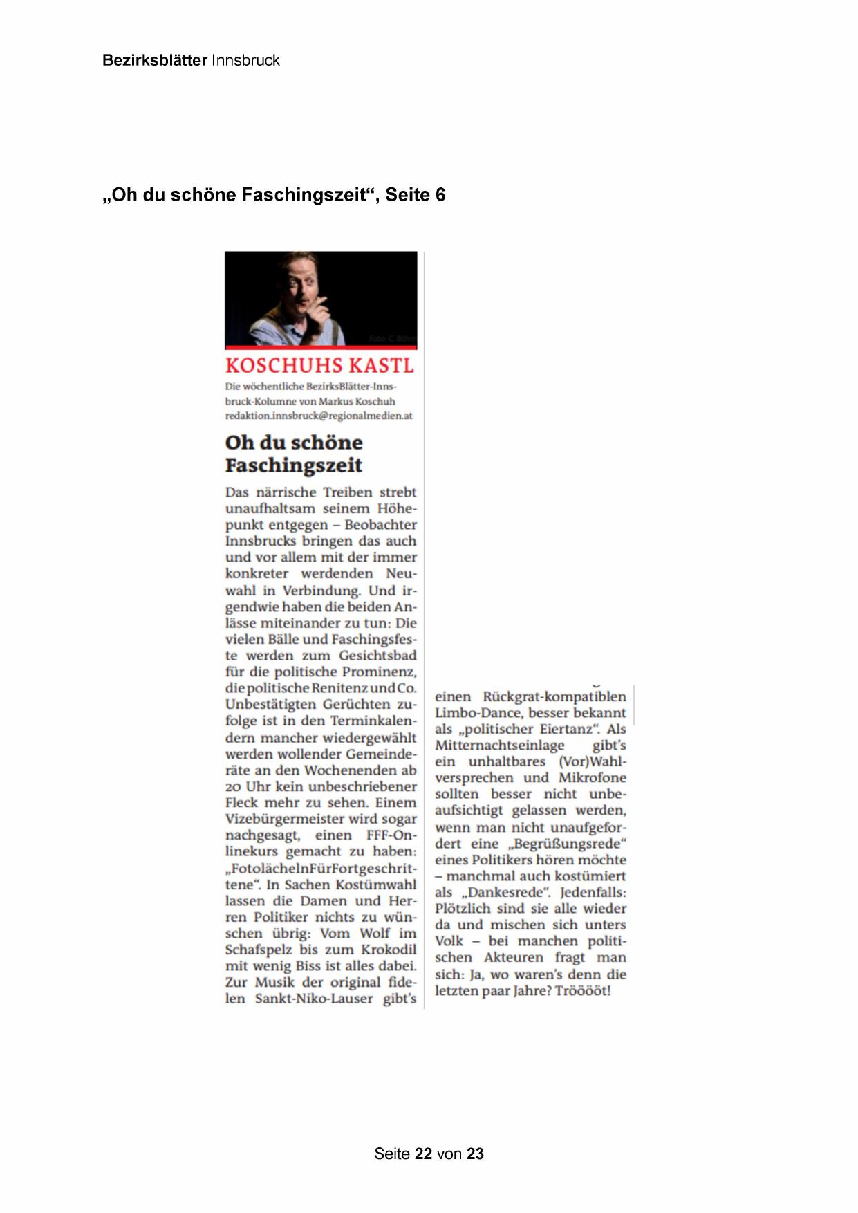 Die wöchentliche BezirksBlätter-Innsbruck-Kolumne von Markus Koschuh