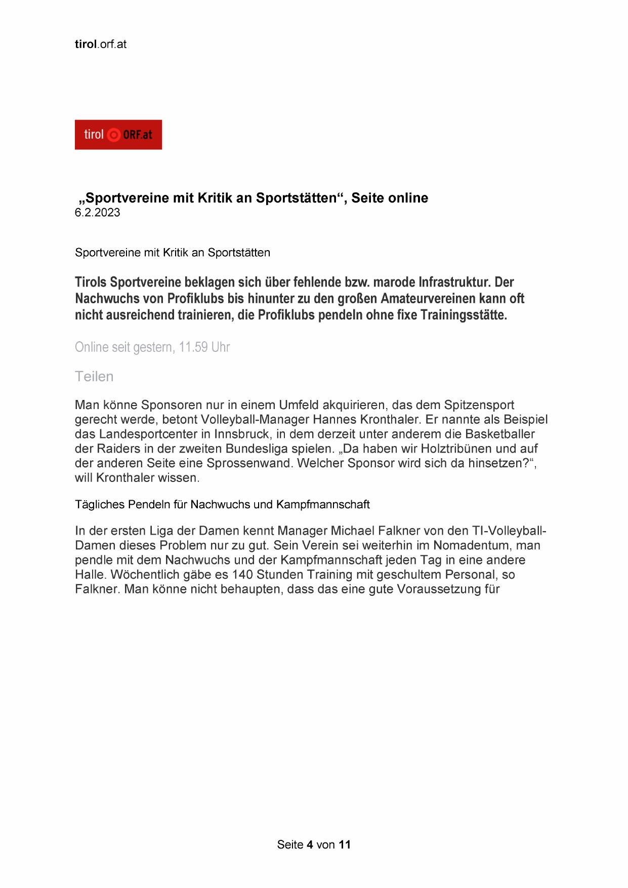„Sportvereine mit Kritik an Sportstätten“, Seite online