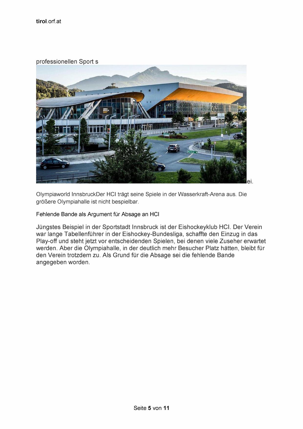 Olympiaworld InnsbruckDer HCI trägt seine Spiele in der Wasserkraft-Arena aus. Die