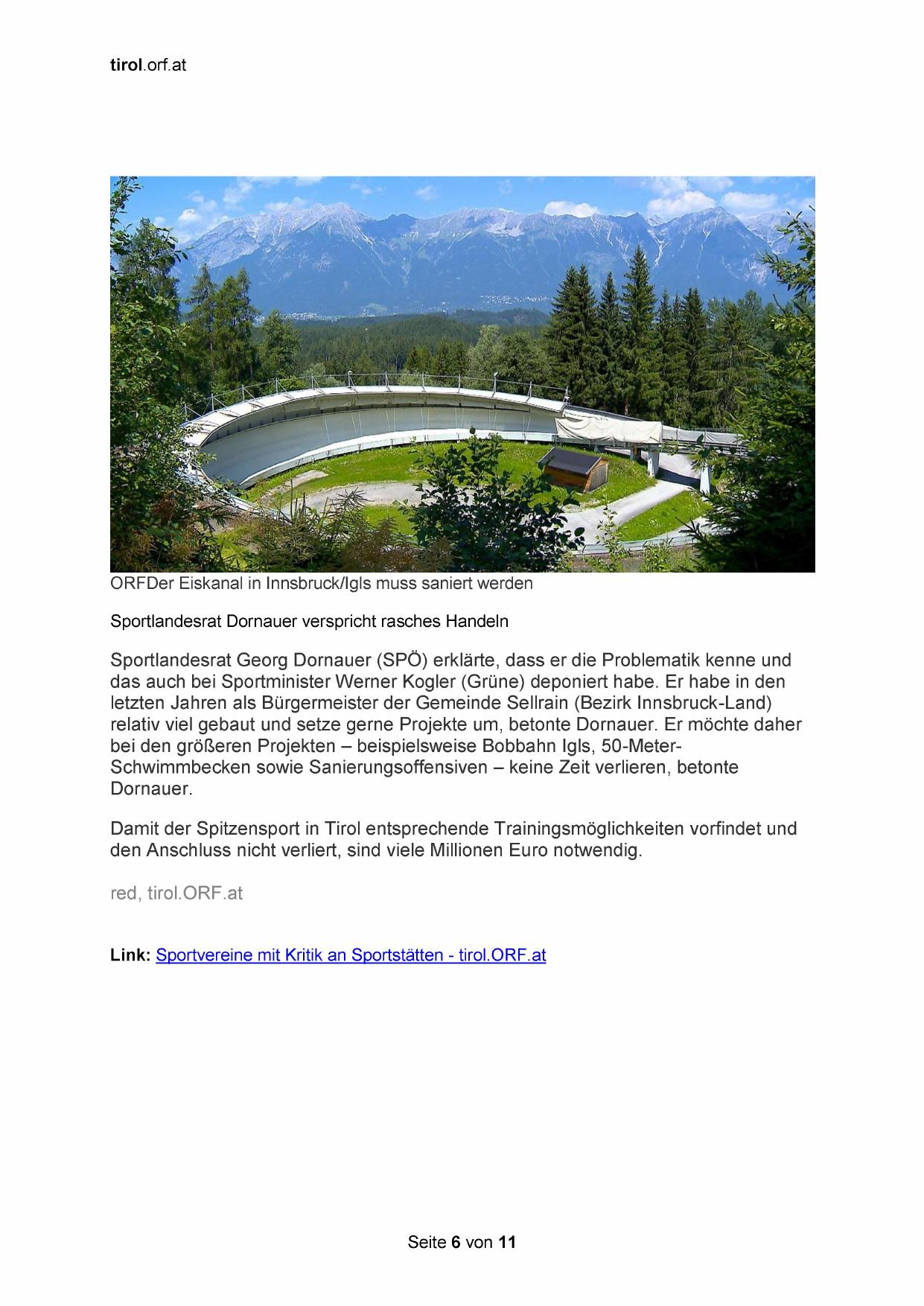 Sportlandesrat Dornauer verspricht rasches Handeln